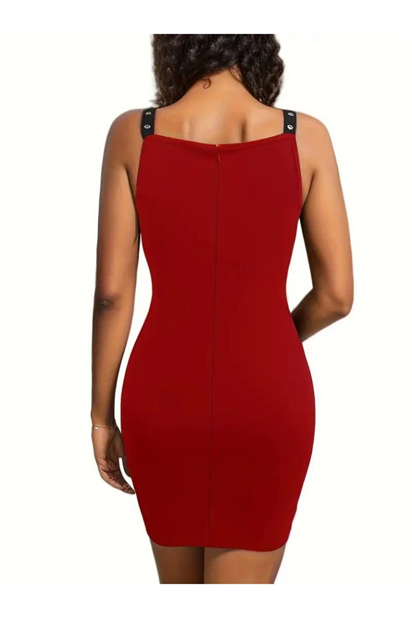 Kadın Askılı Derin V Yakalı Kuş Gözü Detaylı Janjan Krep Elbise