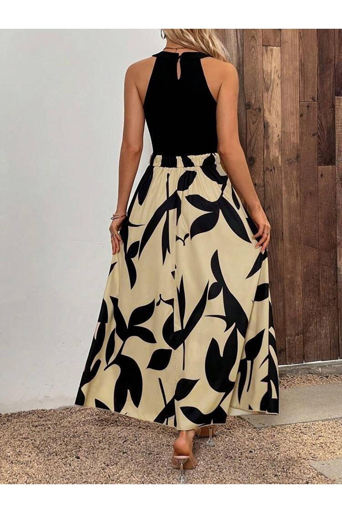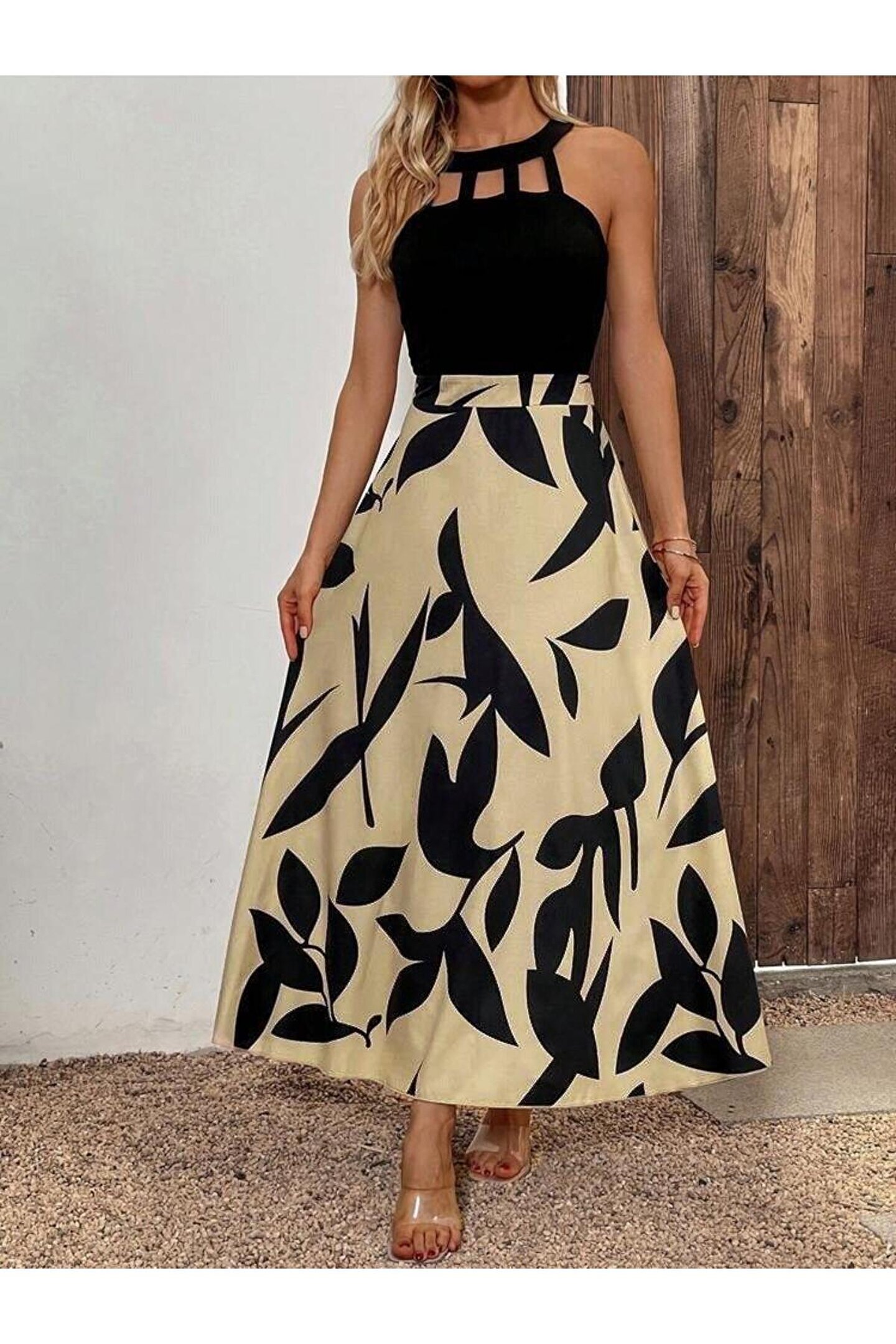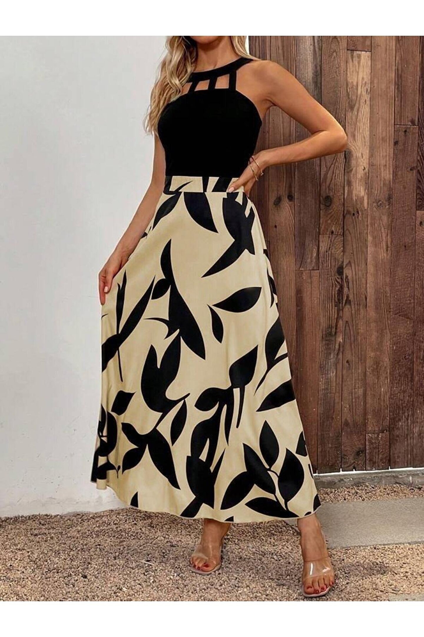 Serero Kadın Sıfır Kollu Yakadan şeritli Omuzlardan Açık Janjan Krep Desenli Al Dalgıç Maxi Elbise