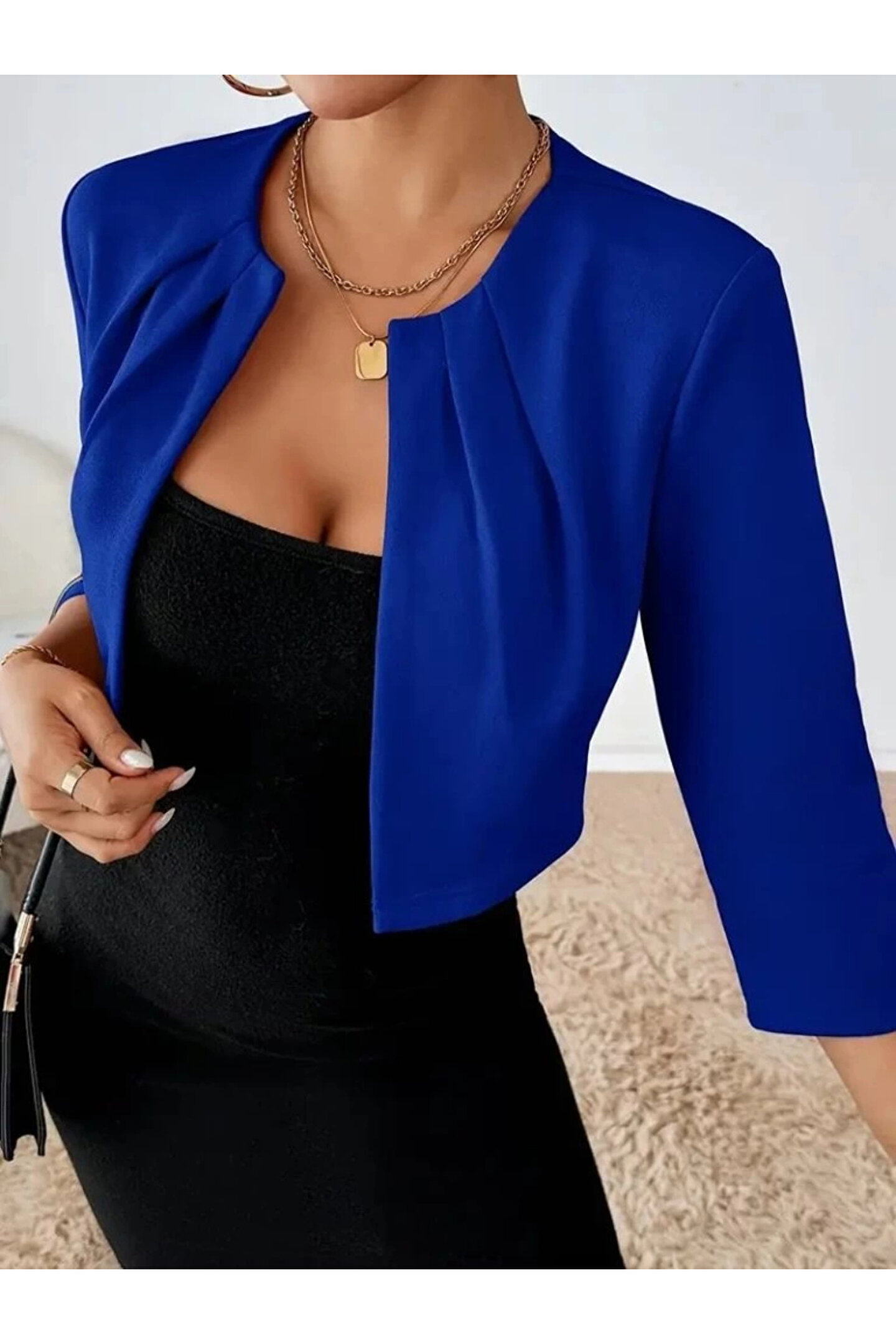 Serero Kadın Truvakar Kol önü Açık Kısa Ithal Krep Ceket