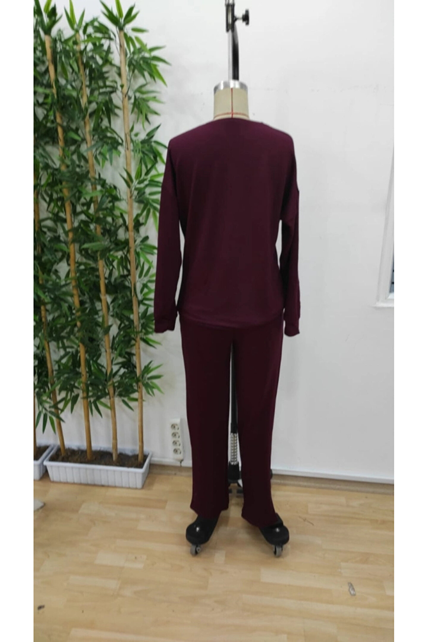 Kadın Uzun Kollu Bisiklet Yaka Viskon Iki Iplik Bluz Ve Pantolon Ikili Takım