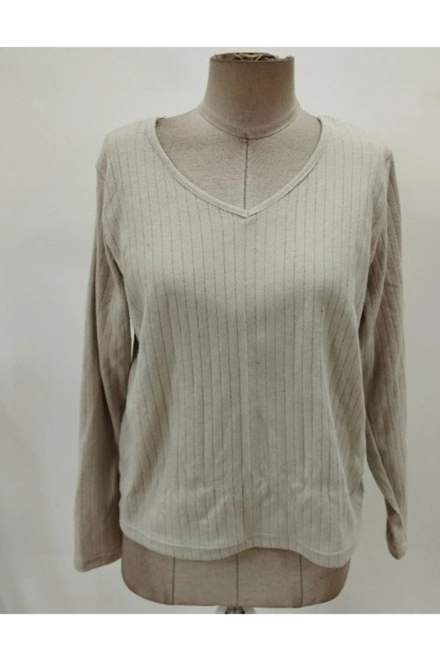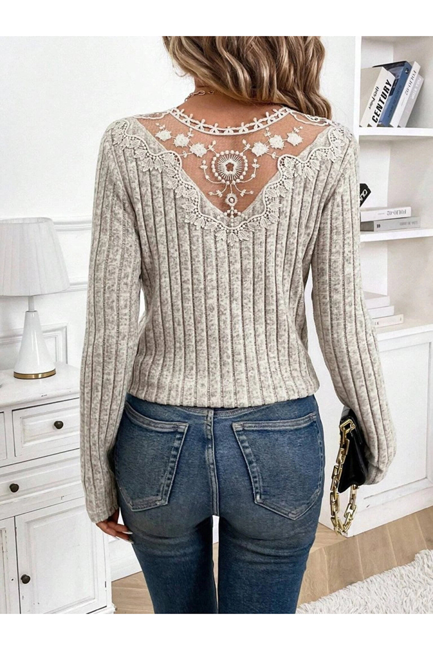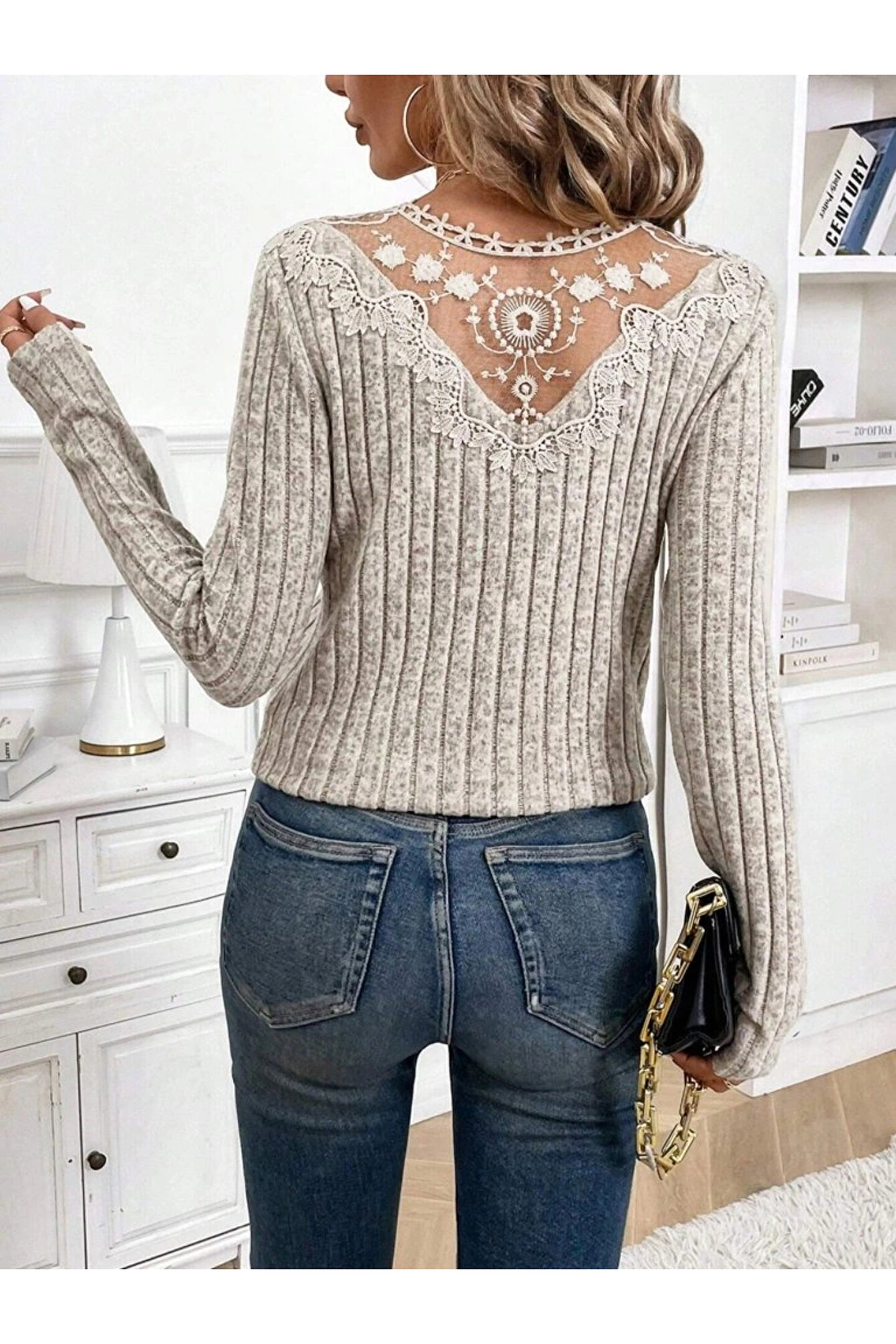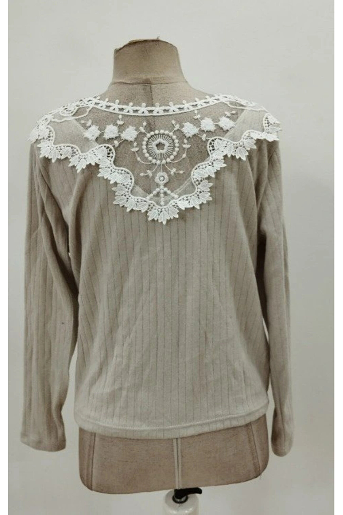 Serero Kadın Uzun Kollu V Yakalı Arkadan Dantel Detaylı şardonlu Kaşkorse Bluz