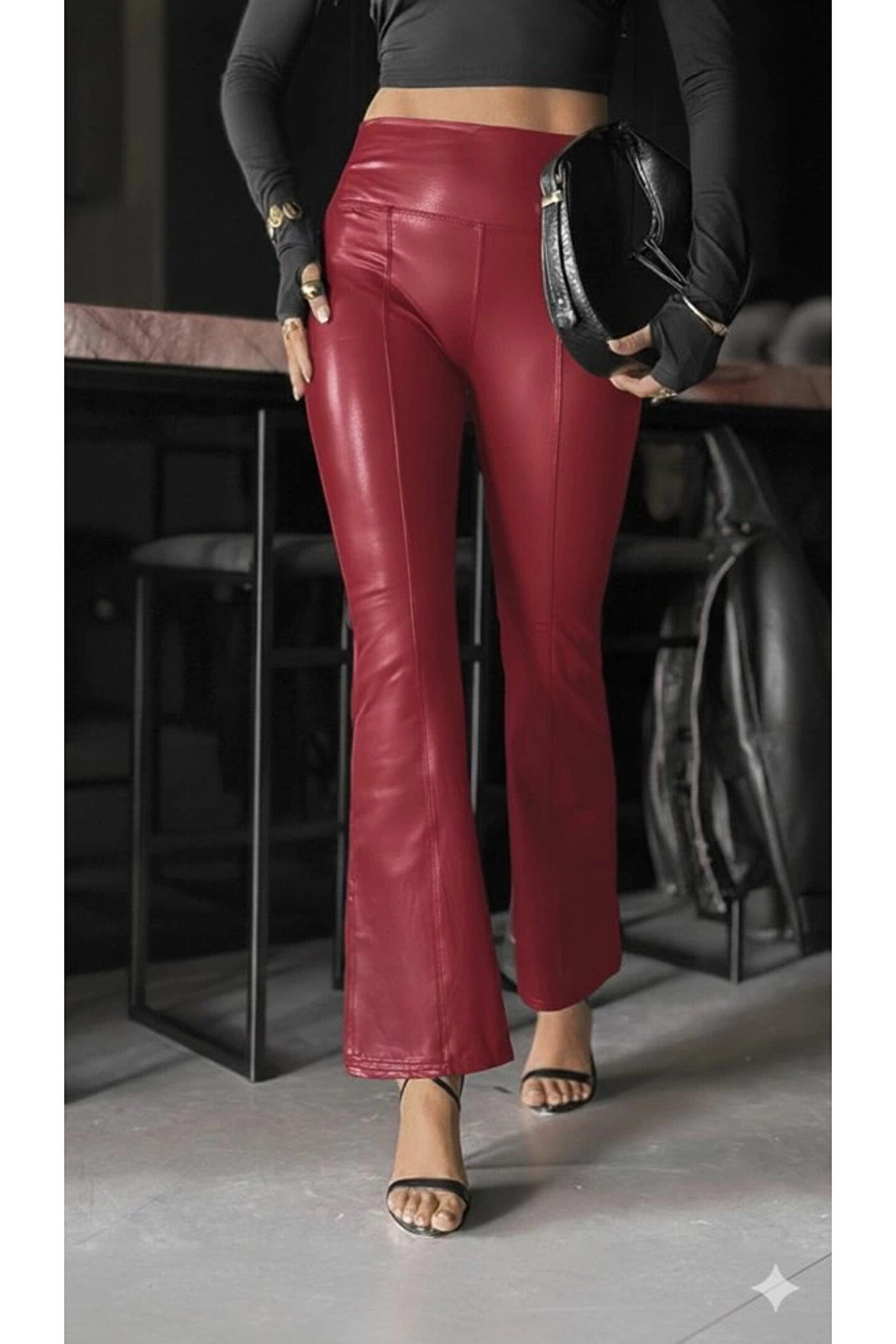 Serero Kadın Yüksek Bel Paçaya Doğru Geniş Deri Pantolon