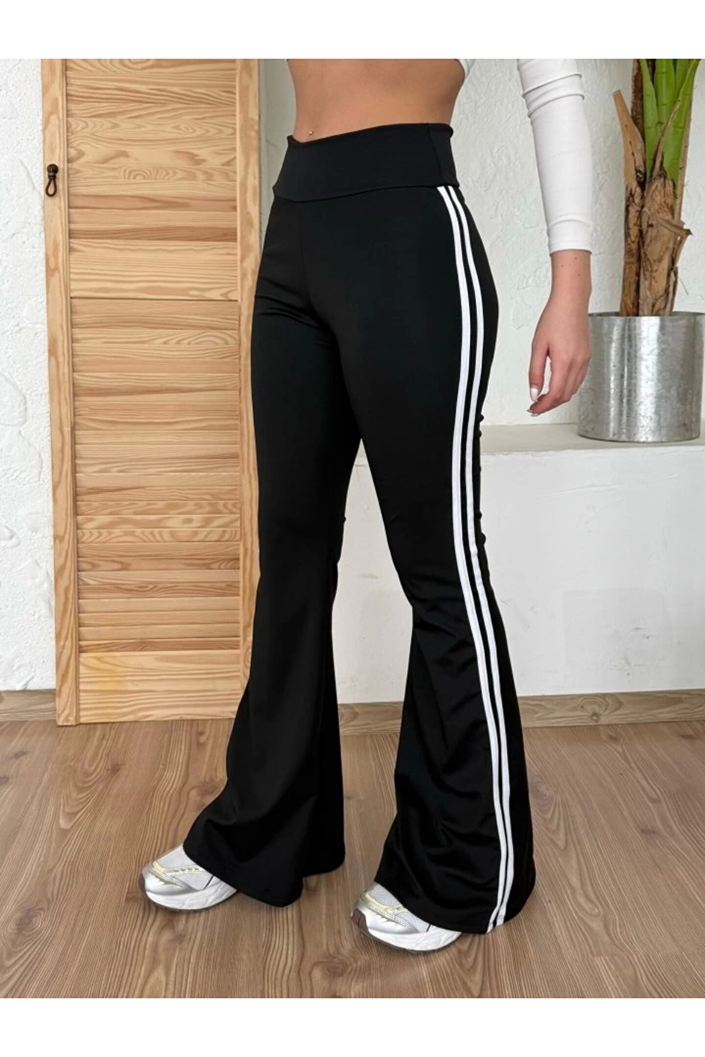 Serero Kadın Yüksek Bel şerit Detaylı Ispanyol Paçalı Dalgıç Pantolon