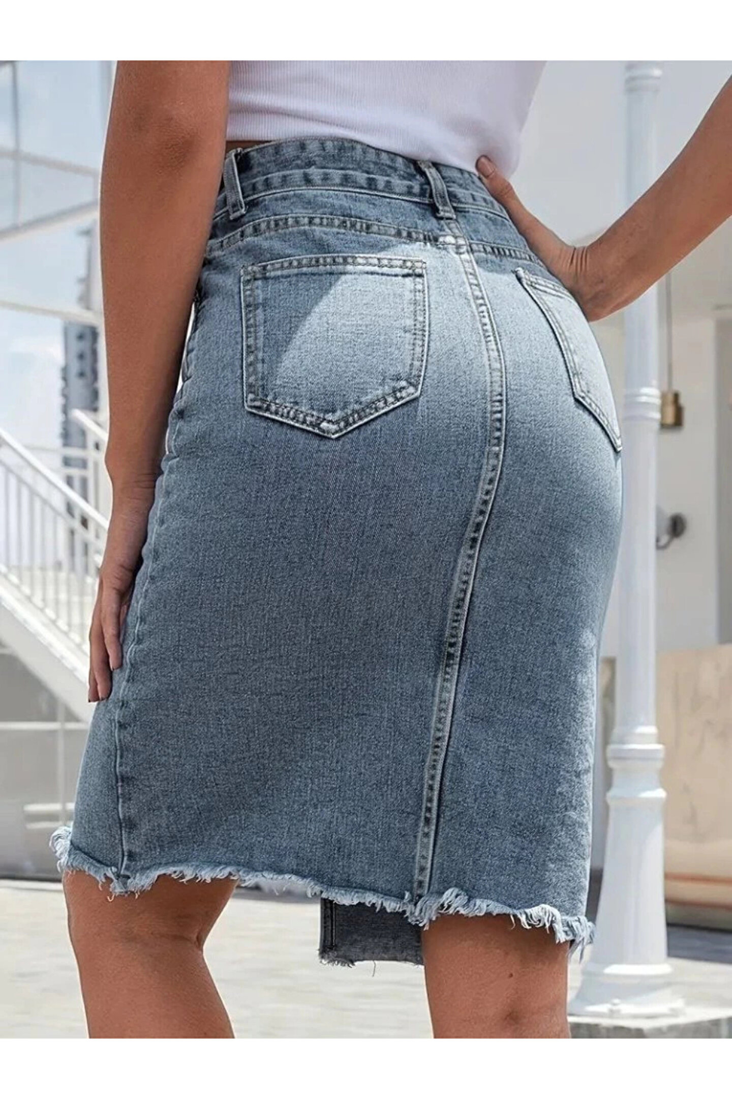 Kadın Elastik Bel Yırtık Kenar Detaylı Kot Etek