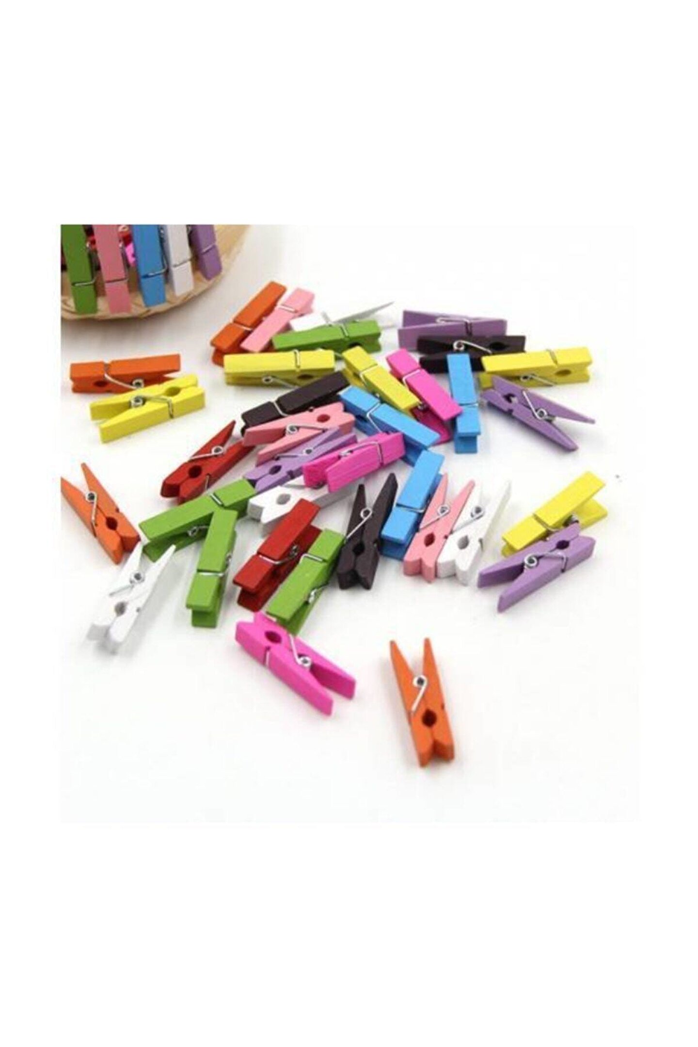 Ahşap Mini Mandal 100 ADET Fotoğraf Mandalı Renkli Ahşap Mandal Rengarenk Süs Mandalı