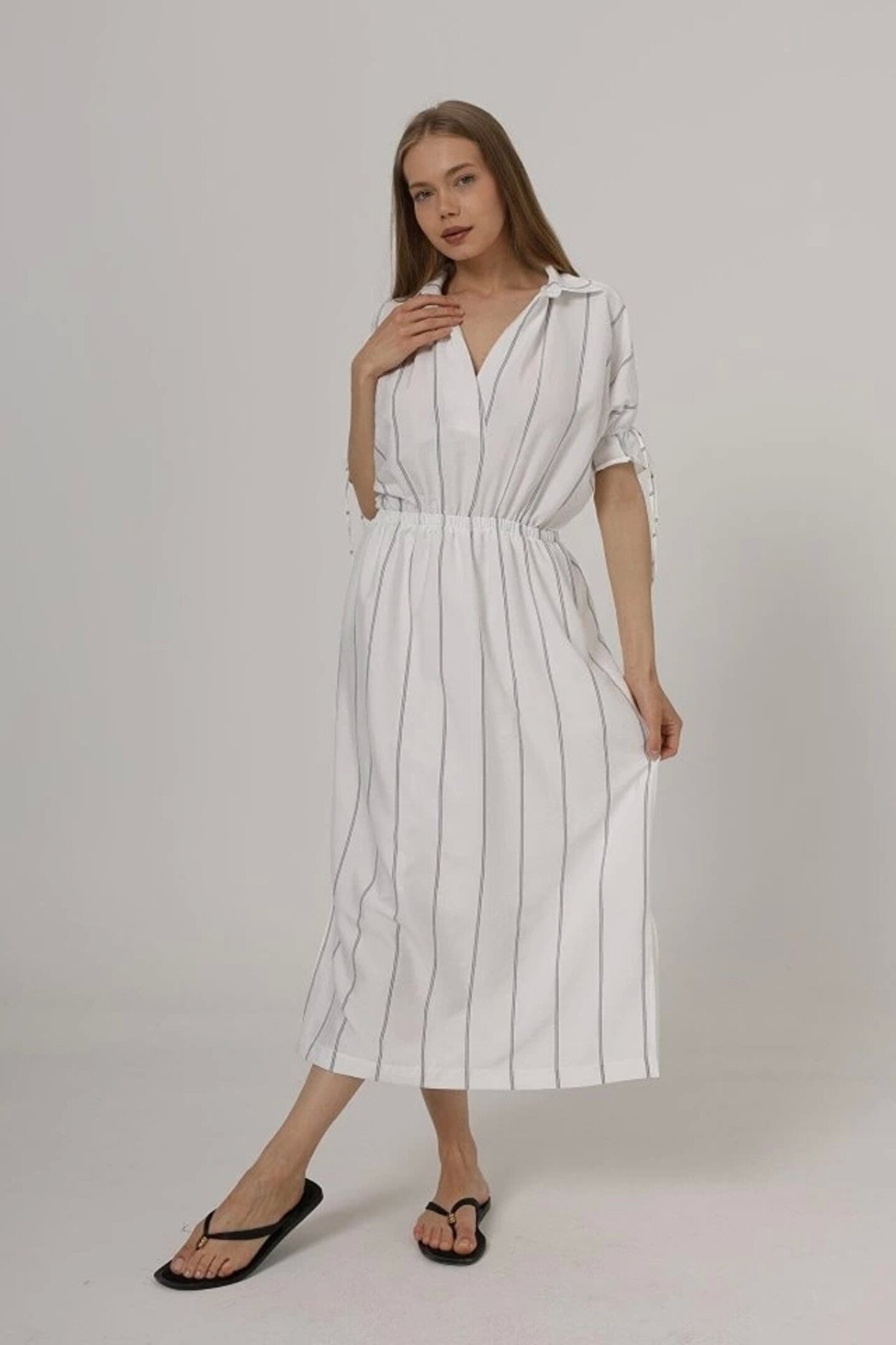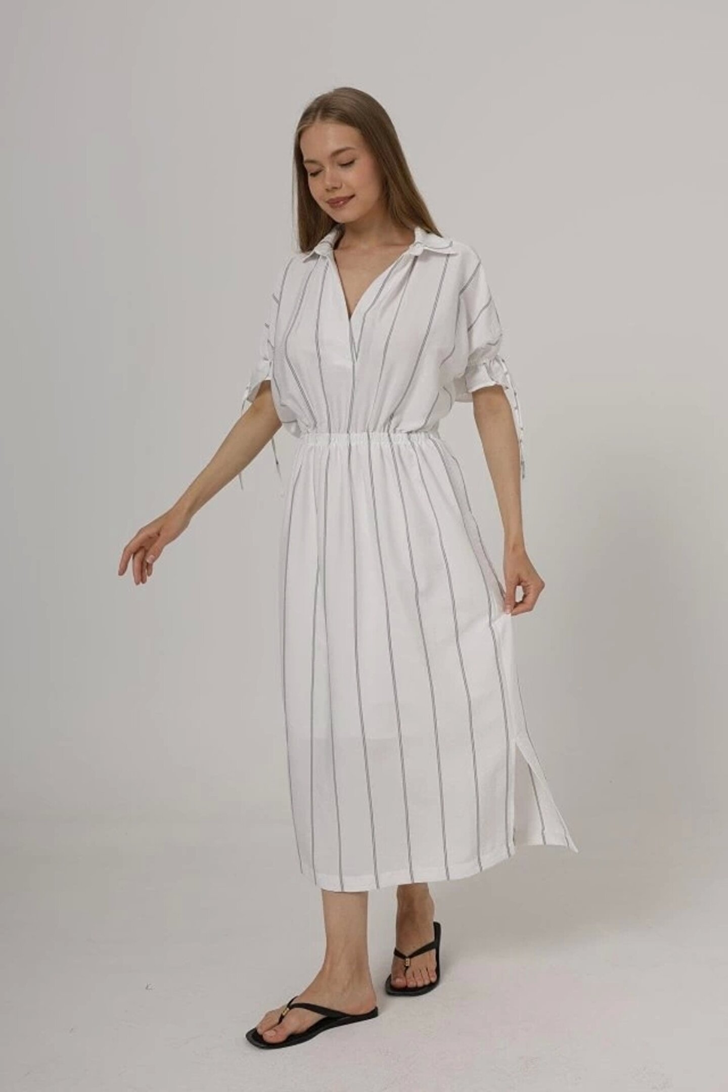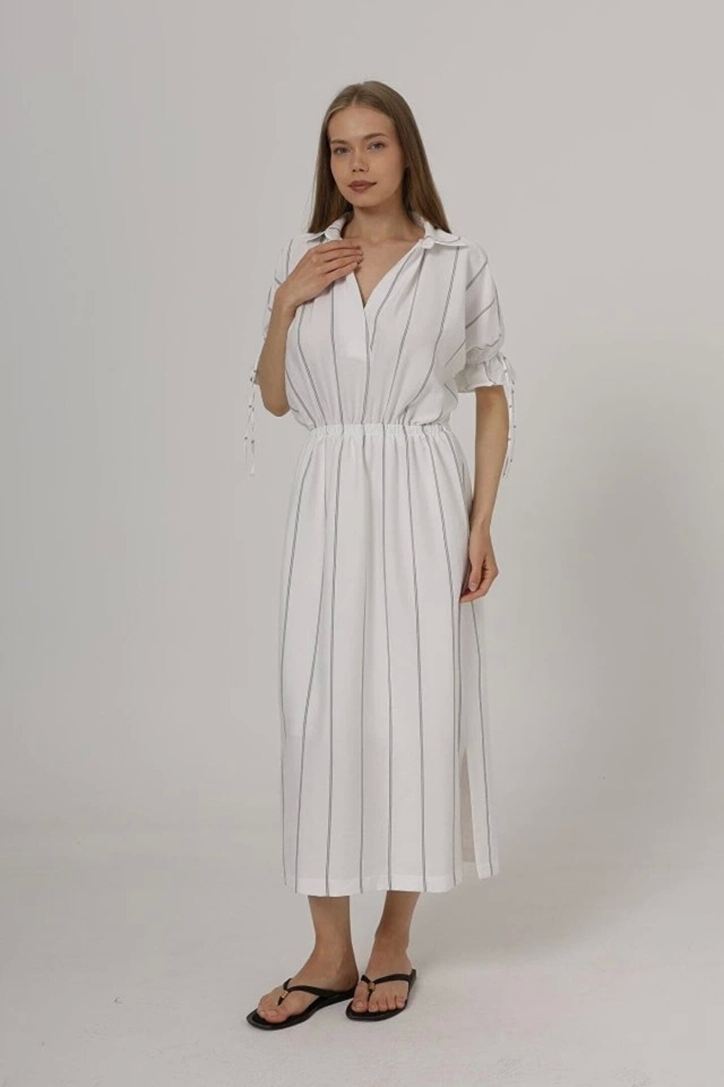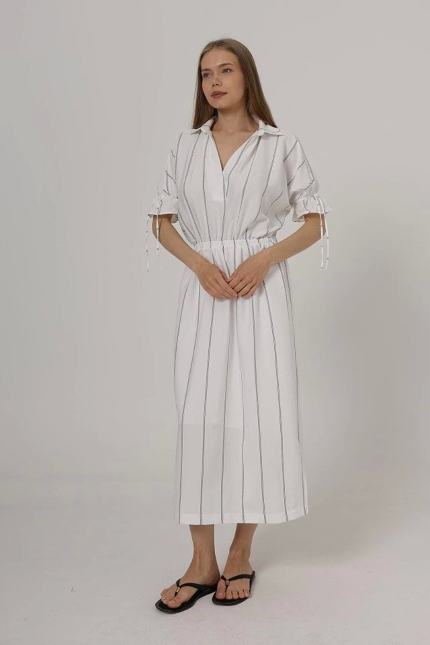 SEYAM Gelirr Beli Lastikli Elbise - Beyaz
