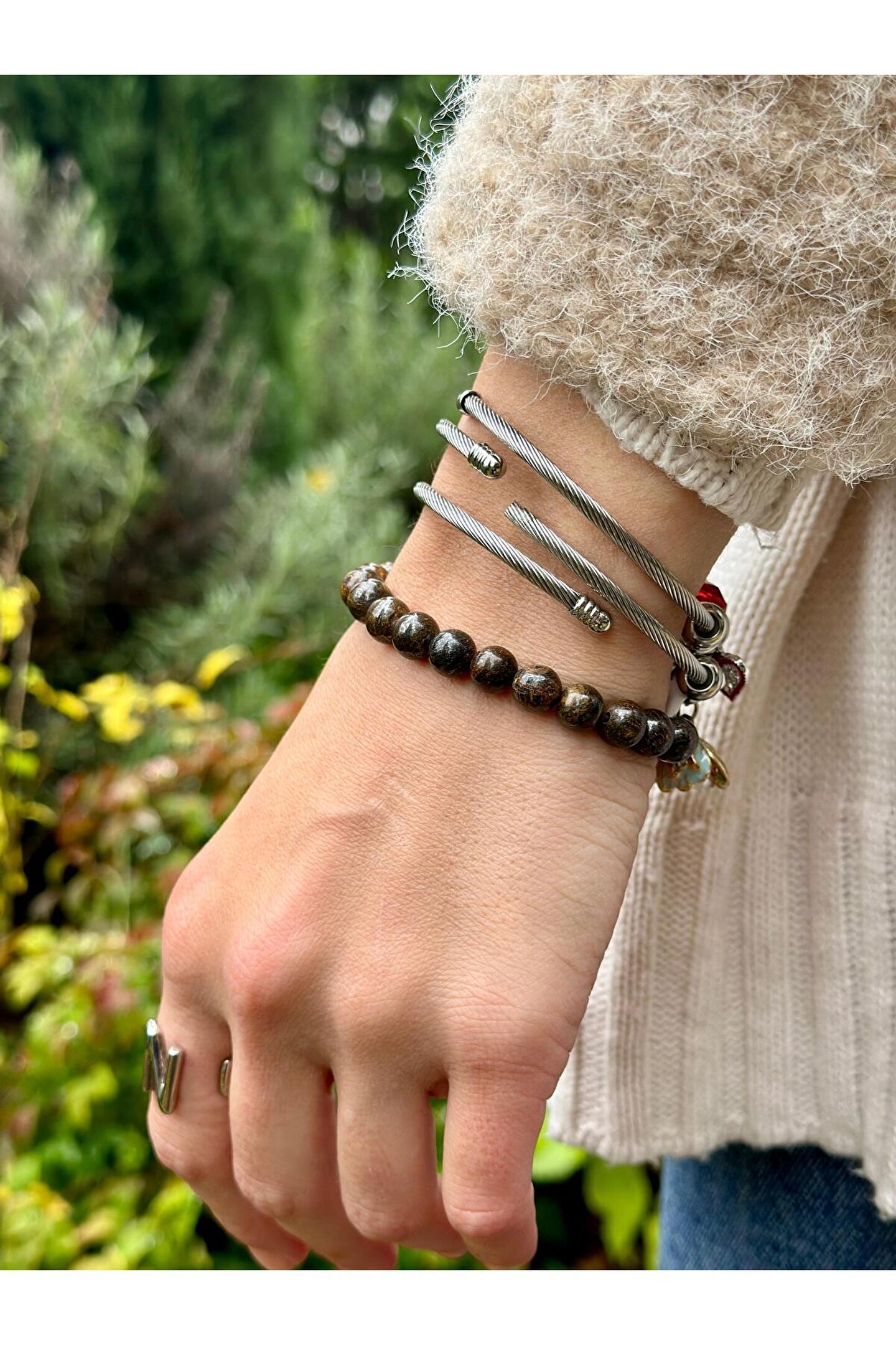 sezaiiletişim 8 Mm Bronzit Taşı Erkek Kadın Doğal Taş Bileklik A Kalite