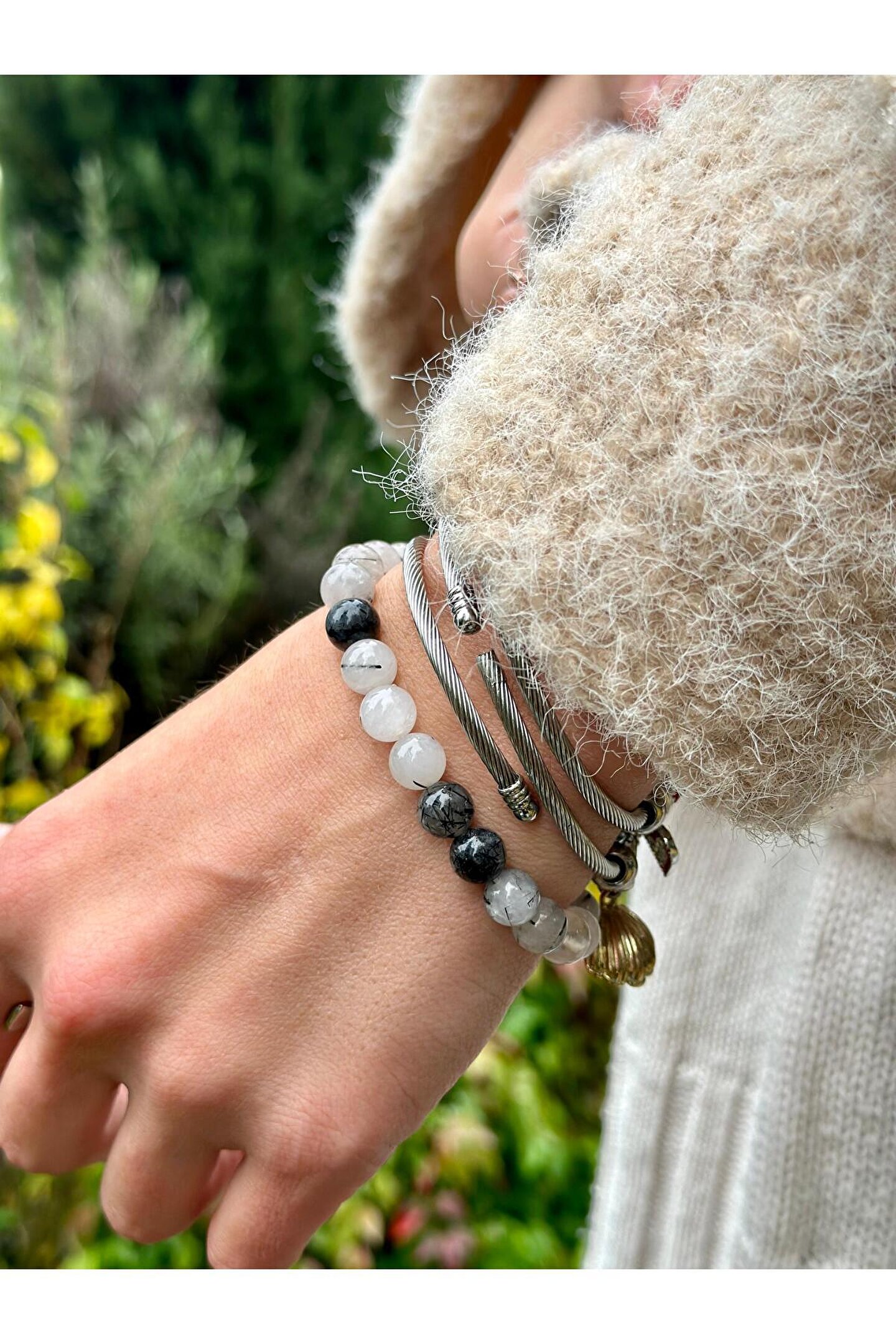 sezaiiletişim 8 Mm Rutilli Kuvars Taşı Erkek Kadın Doğal Taş Bileklik A Kalite