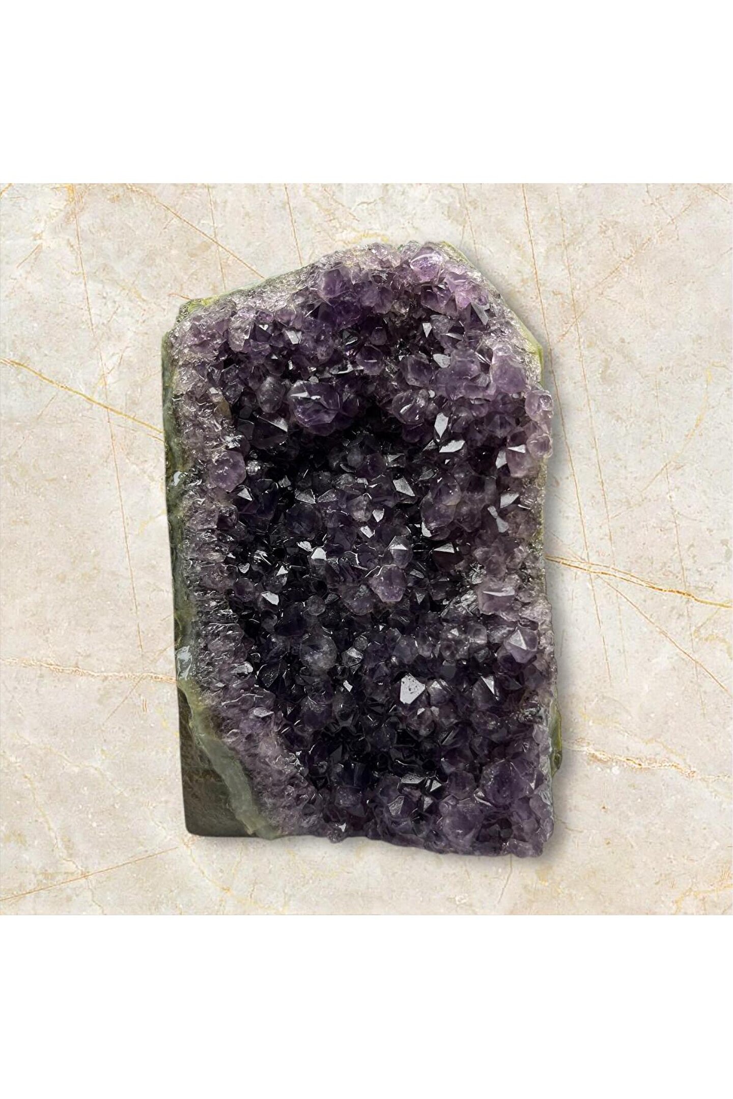 - Türkiye'nin doğal güzelliklerinden gelen Amatist ham kaya, doğanın saf ve otantik dokusunu evinize taşır.; - Tek parça halinde sunulan bu doğal taş, minimalist ve zarif bir dekoratif unsur olarak evinizin atmosferini zenginleştirir.; - Doğal taş materyali sayesinde her bir parça benzersizdir ve doğanın özgünlüğü ile süslenmiştir.;