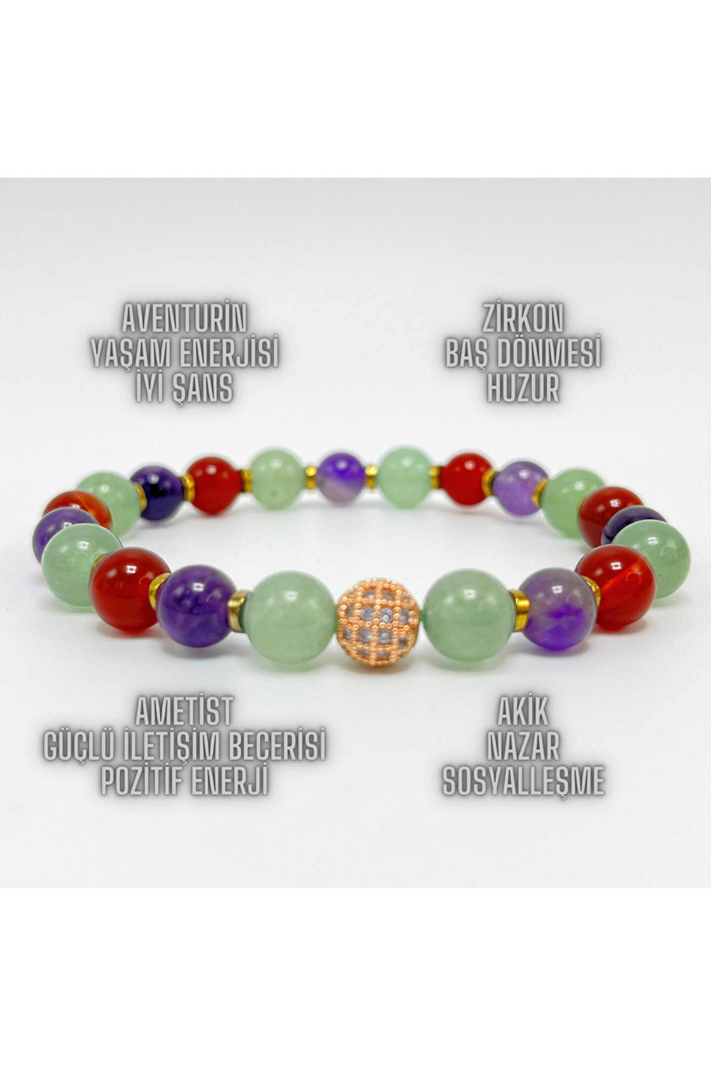 Stil ve ruhaniyetin mükemmel bir uyumu! Ametrin dizi bileklik, eşsiz tasarımıyla göz kamaştırırken, ruhunuzu dengeleyen enerjisiyle de dikkat çekiyor.; Her bir halkasında farklı renklerin uyumunu sunan bu özel kolye, şıklığınıza ve içsel uyumunuza zarif bir dokunuş katıyor.; Ametrin Taşının Özellikleri: "Ametrin", ametist ve sitrinin doğal bir birleşimi olan nadir bir kuvars türüdür; mor ve sarı tonlarını bir arada barındırır, denge ve uyum sembolüdür.; Bu taş, ruhsal denge ve bütünlük sağlamak için bilinir; içsel çatışmayı çözer, berraklık ve uyum hissi verir.; Ametrin, zihinsel netliği artırır ve konsantrasyonu güçlendirir; zorlu kararlar alırken yardımcı olabilir ve yaratıcılığı teşvik edebilir.; Spiritüel olarak, bu taşın, ruhsal gelişimi desteklediğine inanılır; manevi büyümeyi teşvik eder ve sezgisel yetenekleri güçlendirir.; Fiziksel olarak, ametrin, enerjiyi dengeler ve stresi hafifletir; baş ağrılarını azaltabilir ve bağışıklık sistemini güçlendirebilir.; Ürünün bahsedilen özellikleri bilimsel kesinlik taşımamaktadır.; Doğal taşlar, özgün olduklarından, fotoğraftakiyle birebir aynı olmayabilir; şekil ve renk bakımından küçük değişkenlikler gösterebilir.