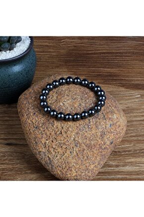 Doğal hematit taşı kullanılarak üretilmiş, şıklığı ve doğallığı bir arada sunan bileklik; Sertifikalı hematit çift kaplan gözü taşı, bileklikte zarif bir görünüm sağlar; Hematit taşı, bileklikte kullanılan materyal olarak doğal taşın estetiğini ve dayanıklılığını ön plana çıkarır;