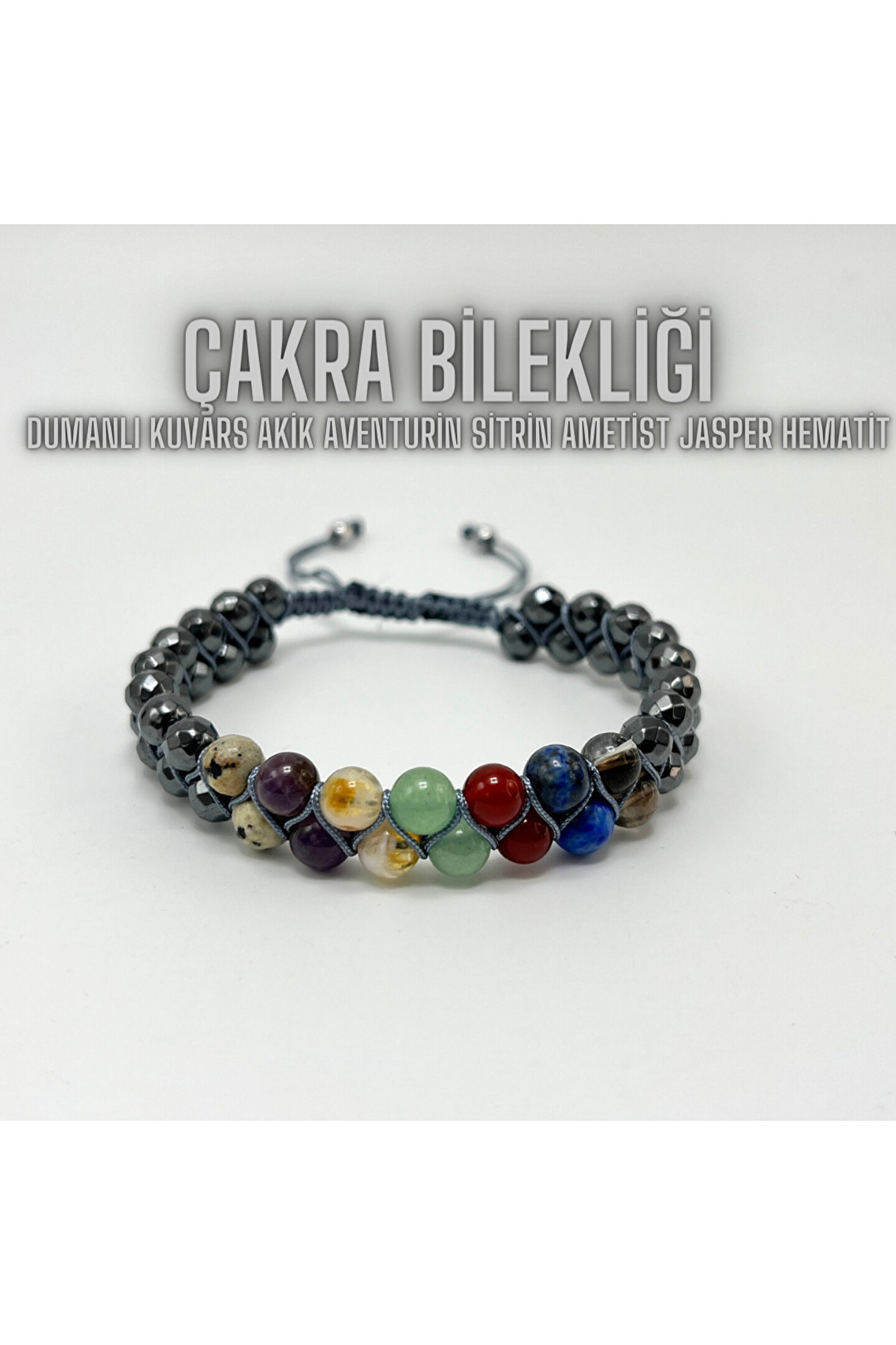 Doğal taşların şıklığını ve enerjisini bileğinizde hissedin; Yedi çakra bileklik, her bir çakra enerjisini temsil eden özel taşlarla tasarlanmıştır; Her bir bileklik, farklı bir çakra enerjisini temsil eden doğal taşlarla süslenmiştir; Bu sayede, kişisel gelişiminizi destekleyen bir aksesuar olarak günlük kullanımınıza eşlik eder; Yedi çakra bileklik, hem şık hem de anlamlı bir aksesuar olarak stilinizi tamamlar; Doğal taşların benzersiz desenleri ve renkleriyle dikkat çeker; Taş materyali sayesinde uzun ömürlü kullanım sunar ve doğal dokusuyla cildinizle uyum sağlar;