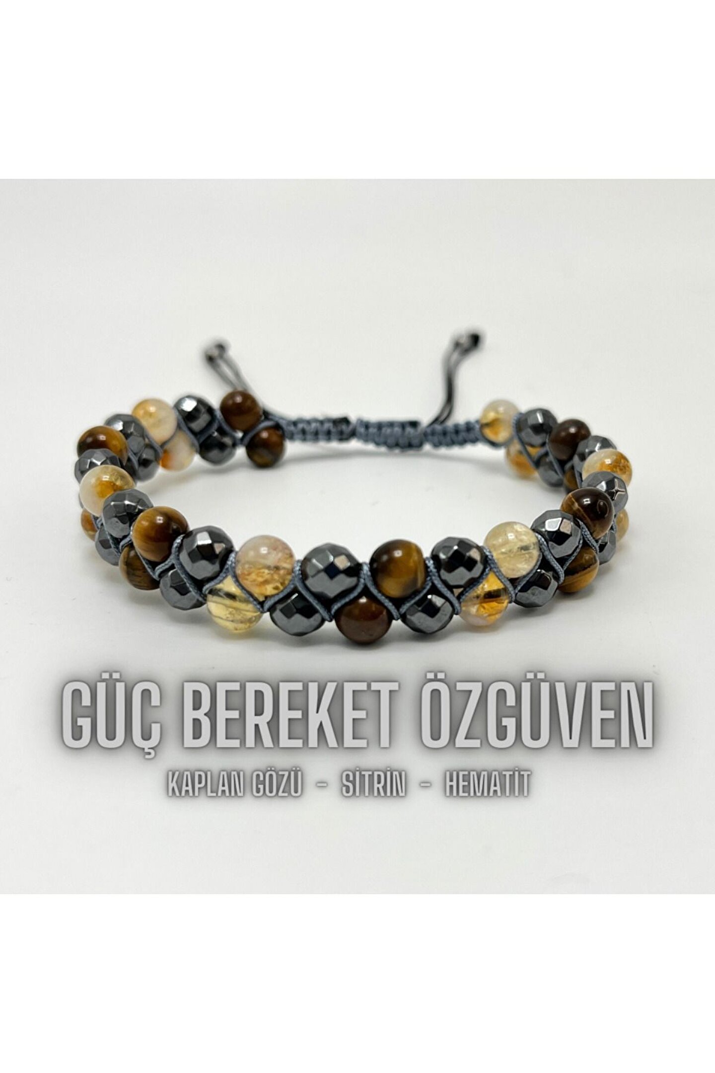 Doğal taş kullanımı sayesinde her bileklik benzersiz ve otantik bir görünüm sunar; Lapis lazuli ve kaplangözü gibi değerli taşların birleşimi, şıklığı ve zarafeti bir arada barındırır; Siyah akik taşı, bilekliğe derinlik ve sofistike bir hava katar; Doğal taş materyali ile hem dayanıklılık hem de estetik bir dokunuş sağlar;