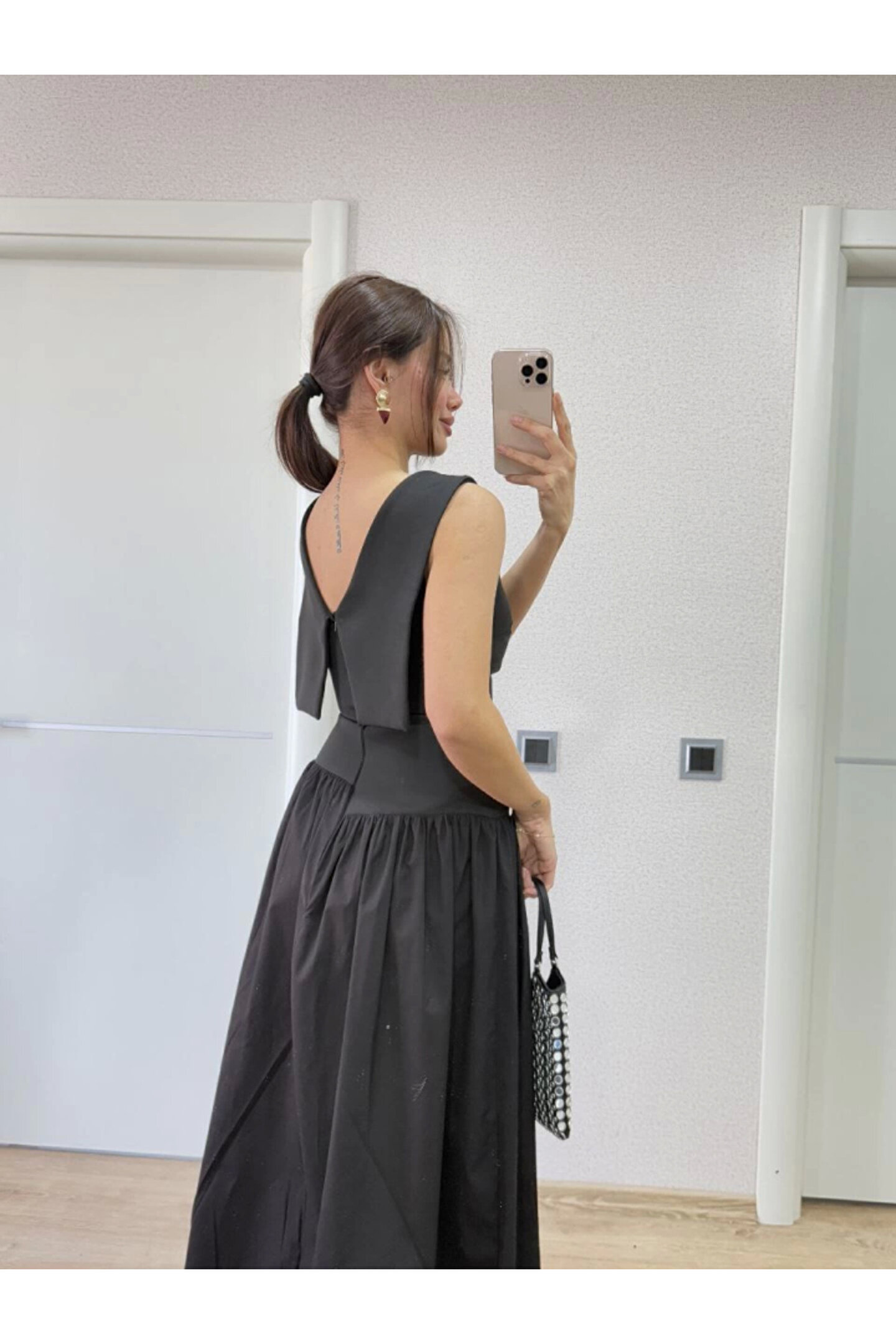 SGM BUTİK Arkası Kanatlı Uzun Elbise- Siyah