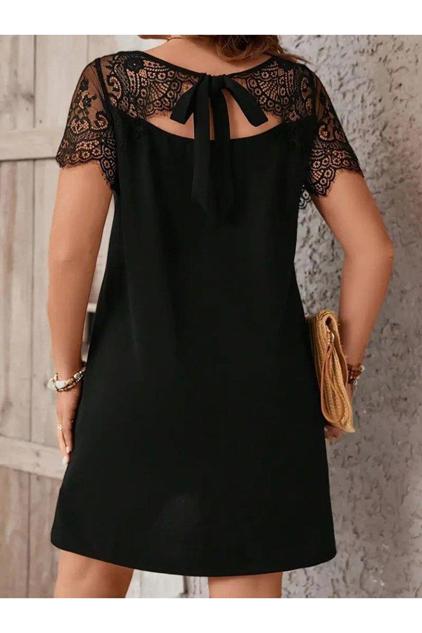 SGM BUTİK Kadın Kısa Kollu Dantel Bisiklet Yaka Ve Kol Dantel Detaylı Janjan Krep Elbise