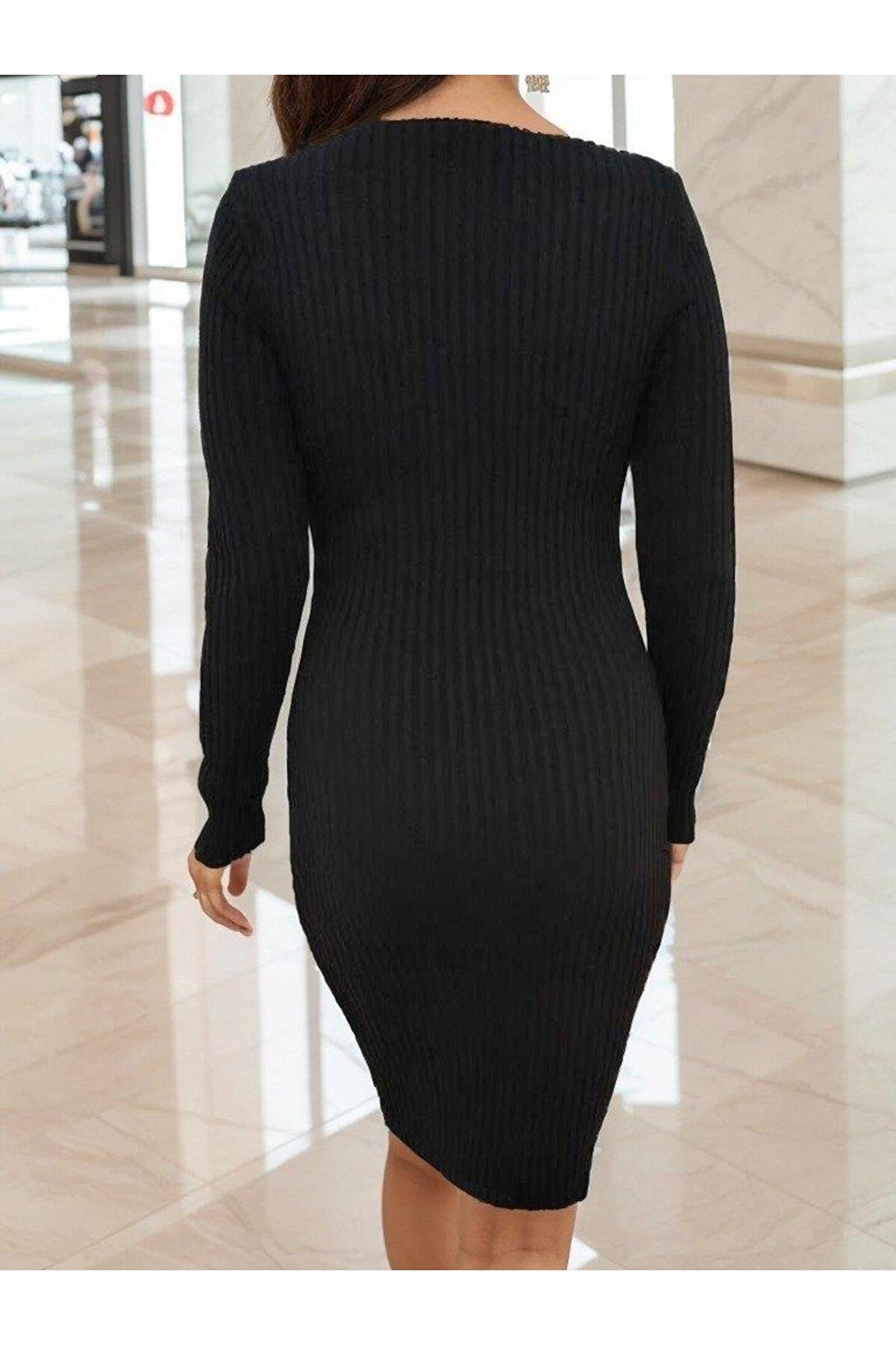 SGM BUTİK Kadın Uzun Kollu V Yaka Triko Elbise