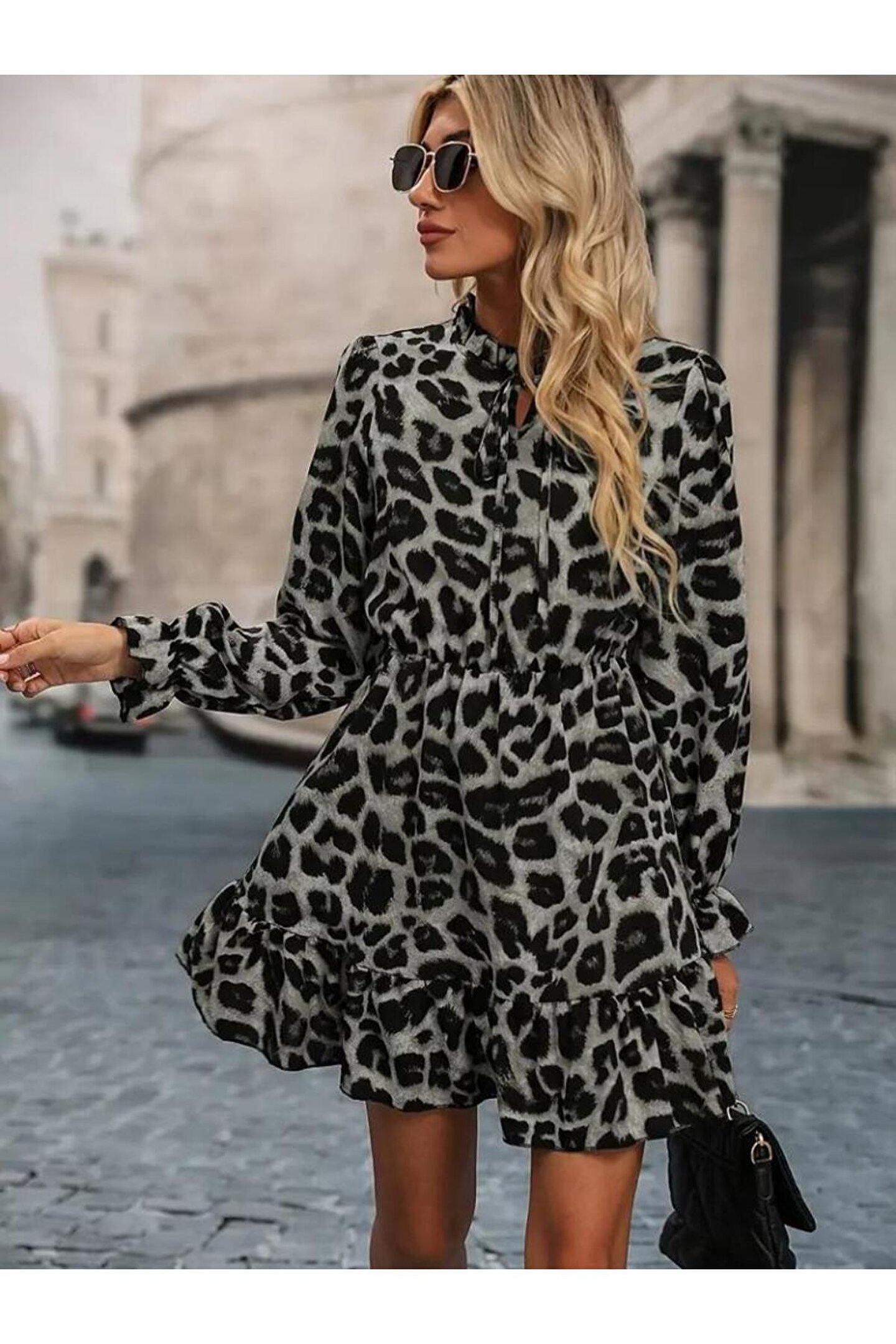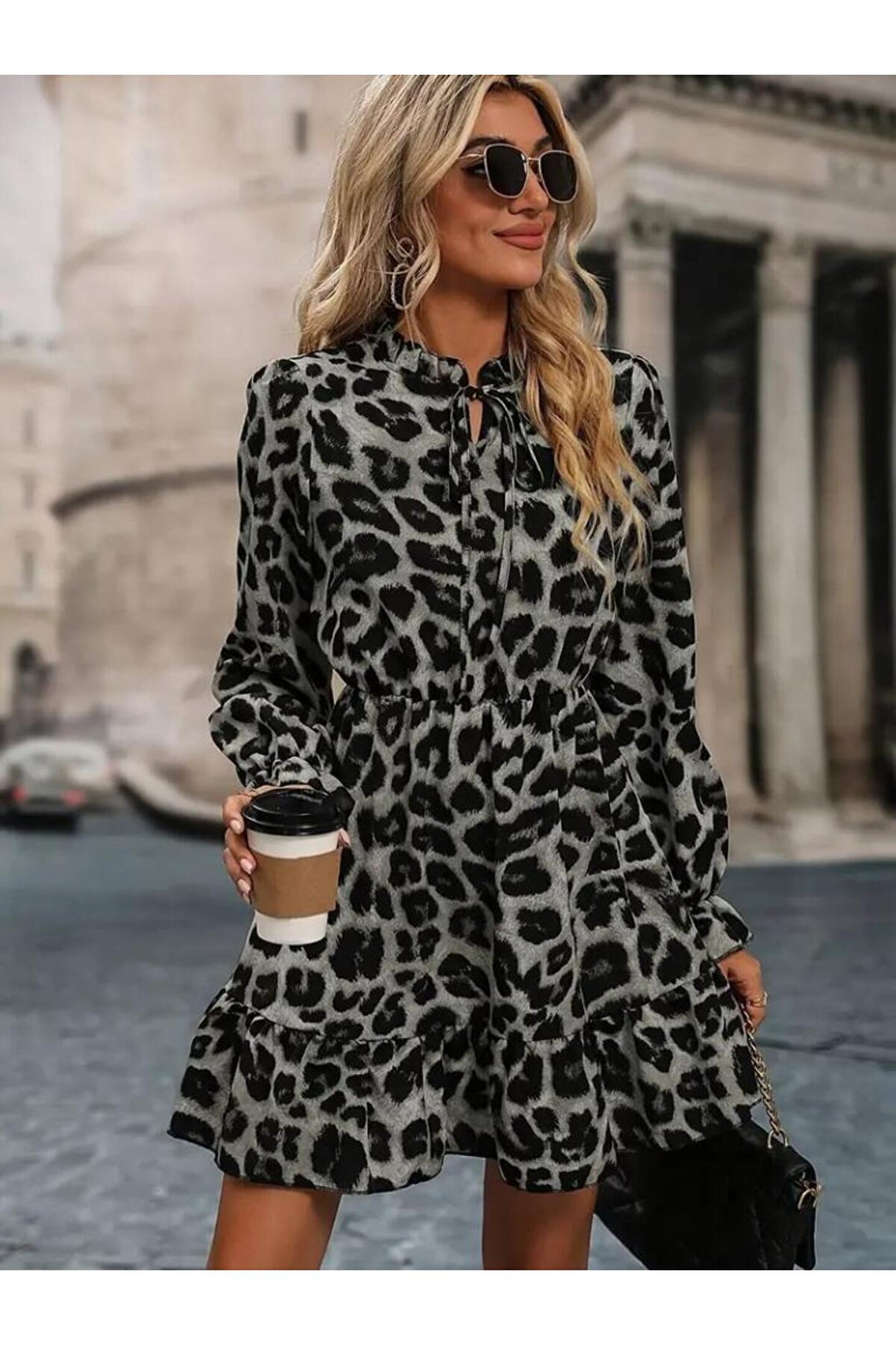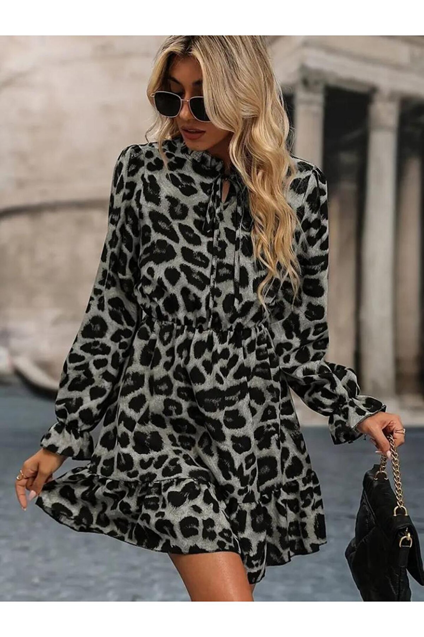 SGM BUTİK Kadın Uzun Kollu Yakadan Bağlamalı Beli Lastikli şardonlu Dalgıç Elbise