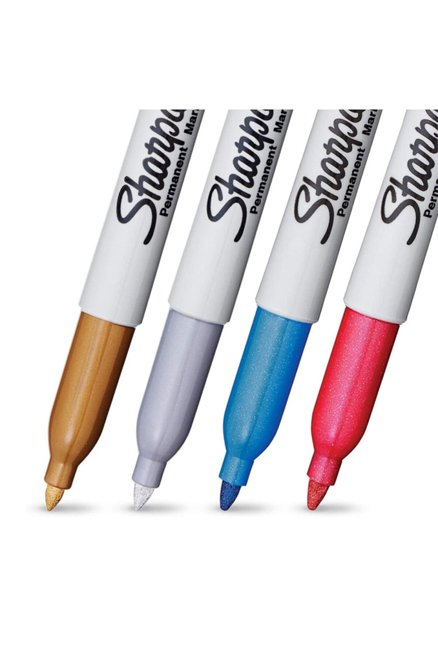 Sharpie 4'lü Blister Metalik Markör 2067107 Yeni renklerde çarpıcı kalıcı metalik işaretleyiciler. Otantik yüzeyler hem açık hem de karanlık yüzeylerde öne çıkıyor. Çabuk kuruyan, solmaya ve suya dayanıklı mürekkepler. İnce uçlu uç, etkileyici şekilde kalın, ayrıntılı işaretler oluşturur. Renkleri;Metalik Yakut, Metalik Zümrüt, Metalik Altın ve Metalik Gümüş.
