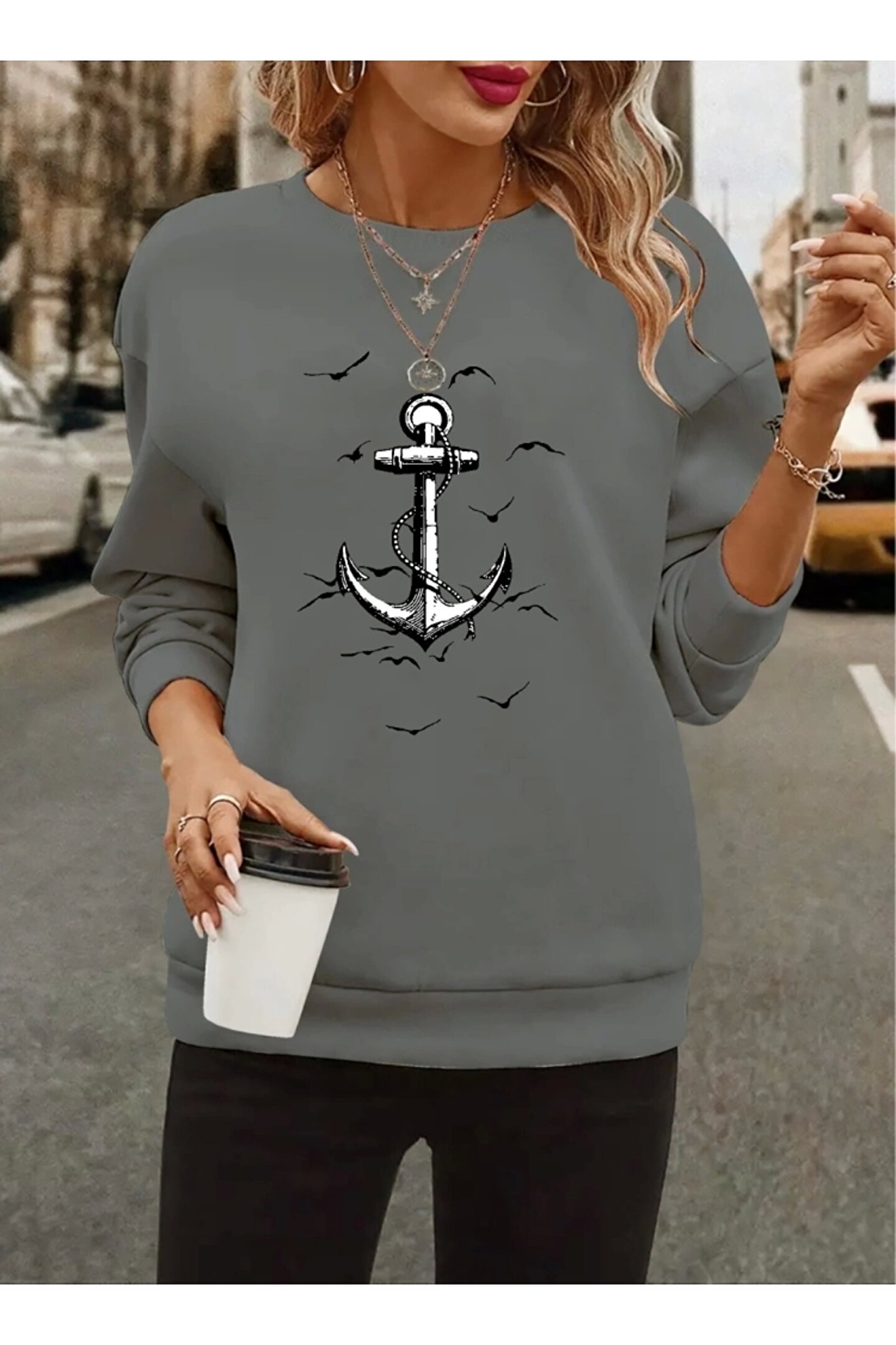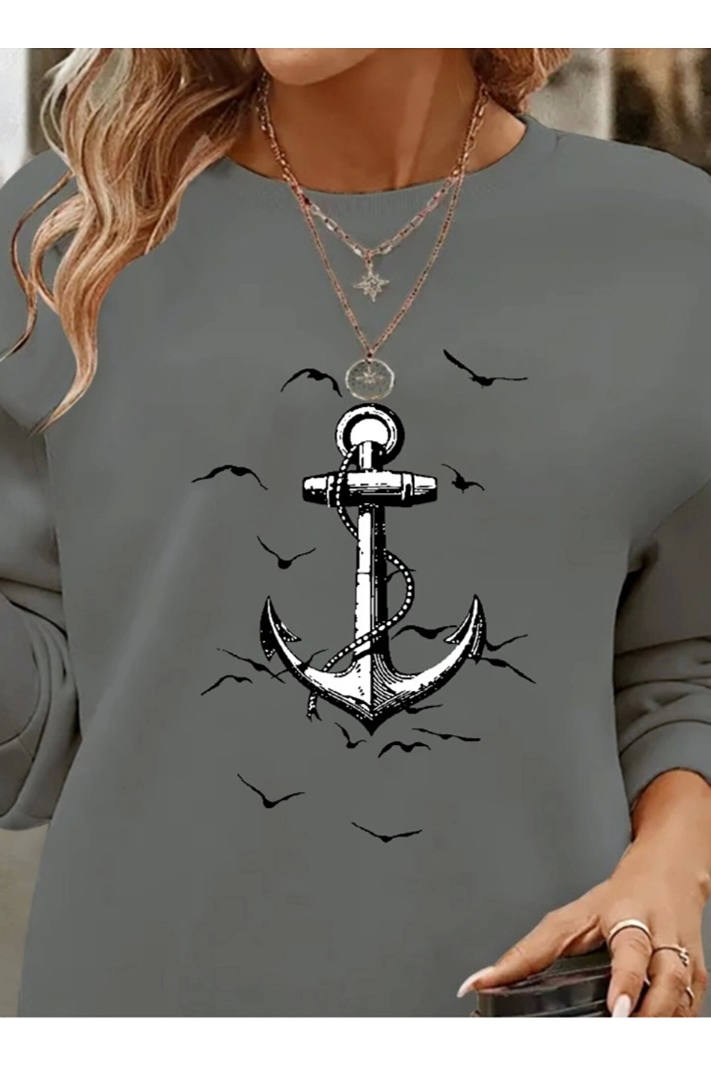 Kadın Uzun Kollu Bisiklet Yaka Desenli Viskon Iki Iplik Bluz