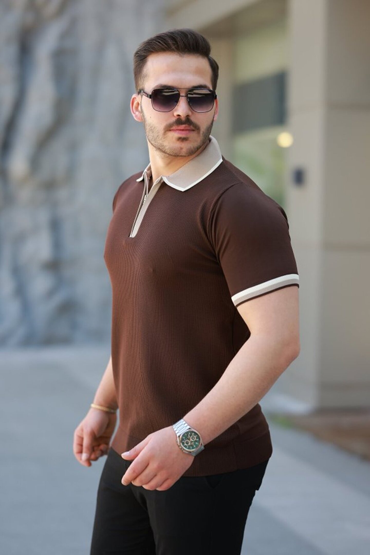 shopivastore Gökyüzü Moda Erkek Renkli Yaka Kısa Kollu Tişört