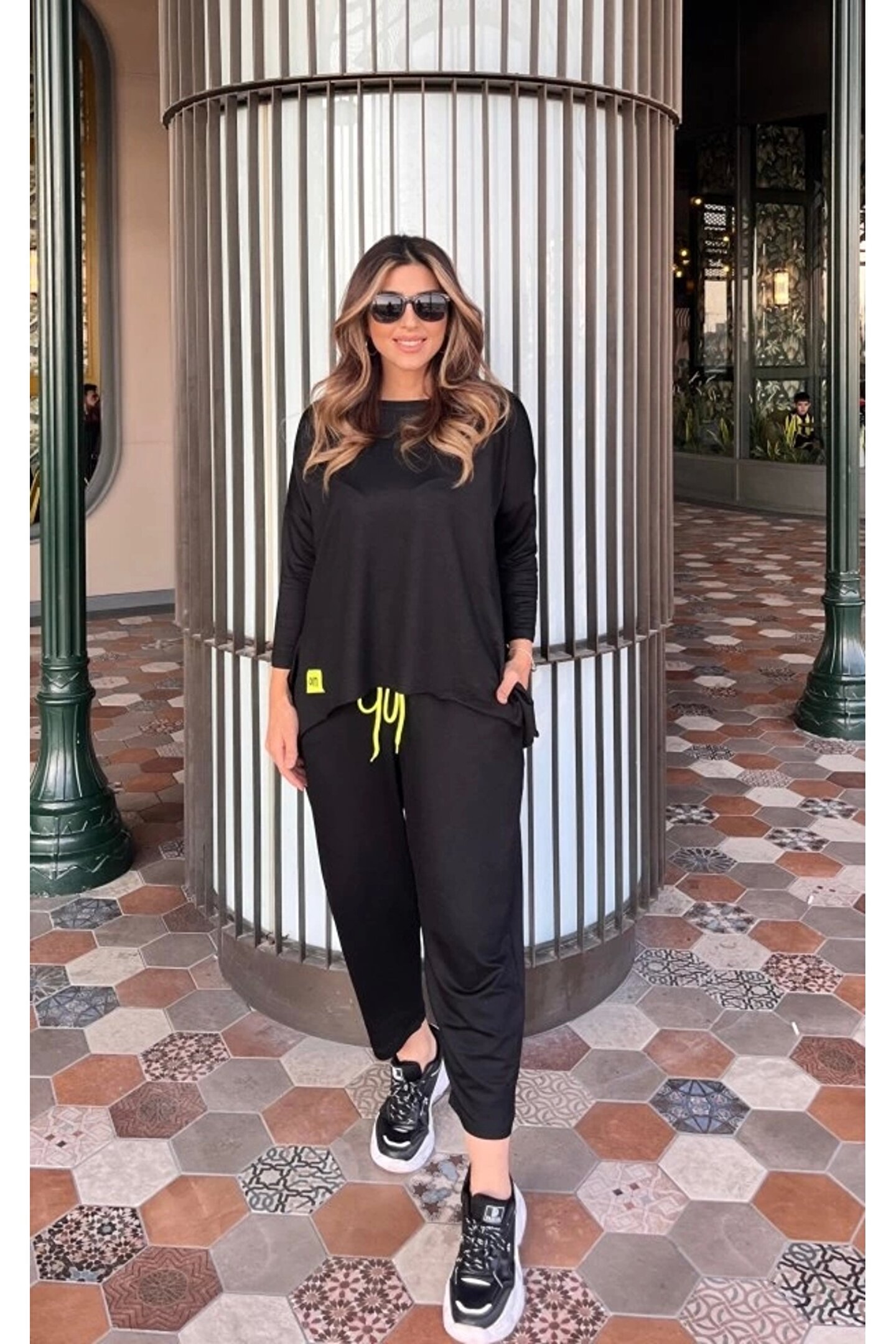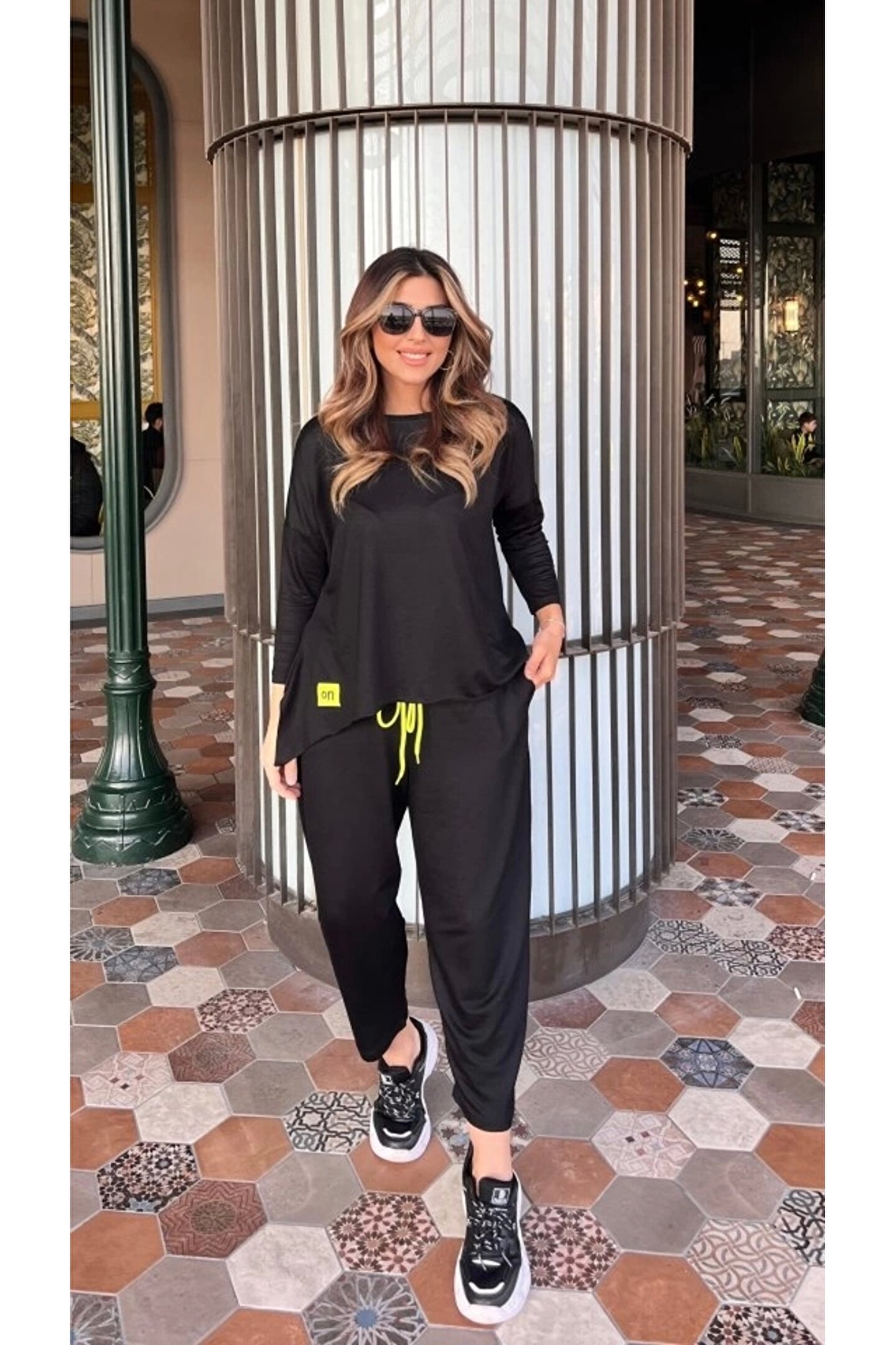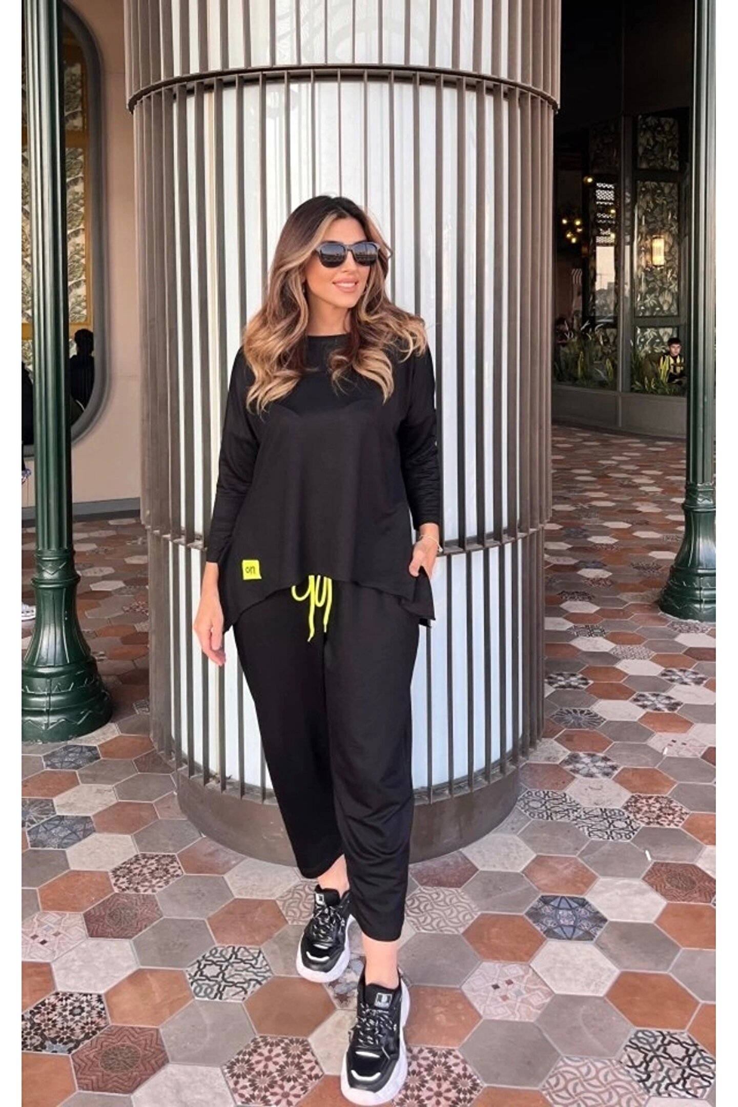 Kadın Iki Iplik Viskon Pamuk Kumaş Arma Detaylı Ikili Takım