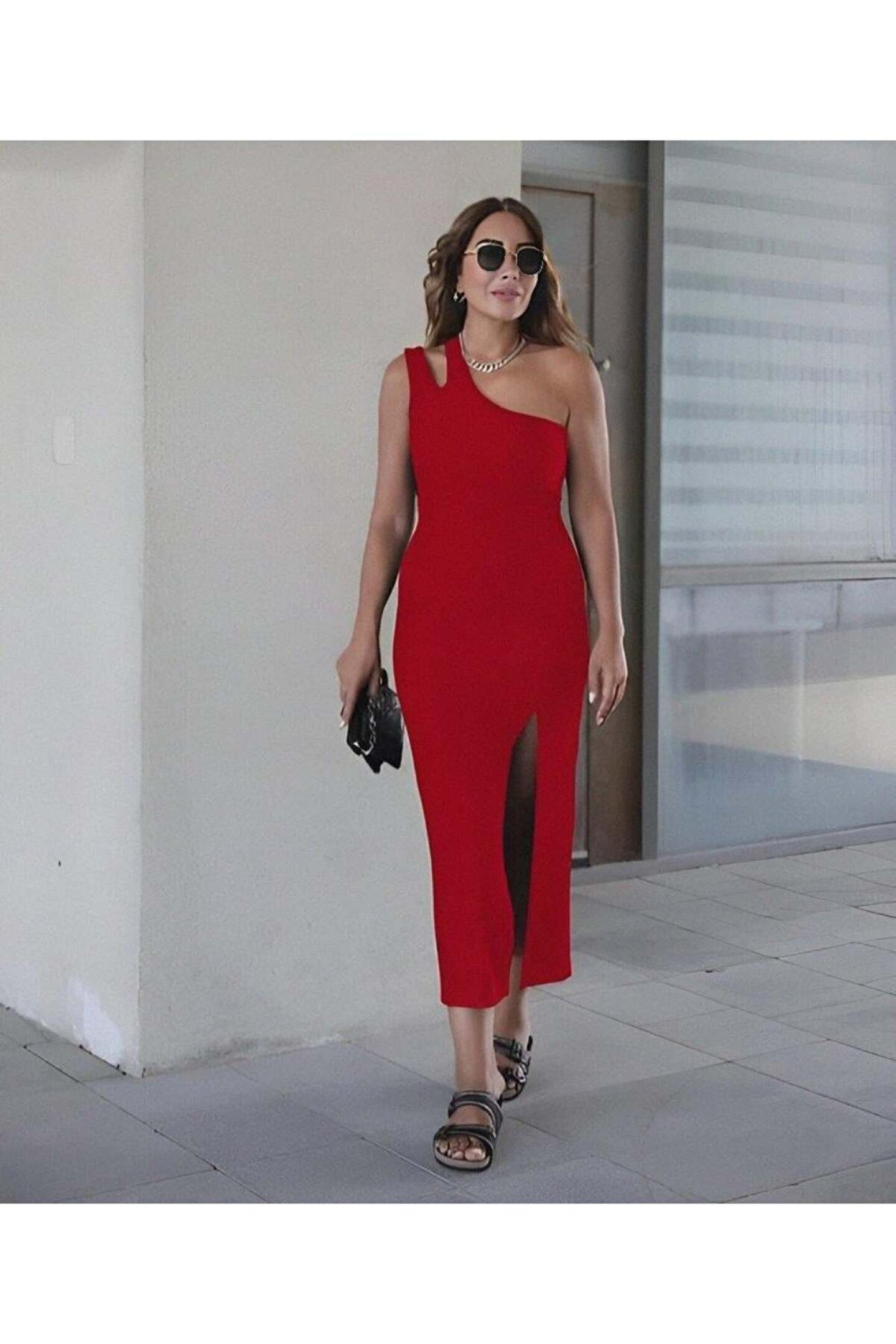 shopivastore Kadın Kolsuz Tek Omuz Damla Detay JanJan Krep Elbise