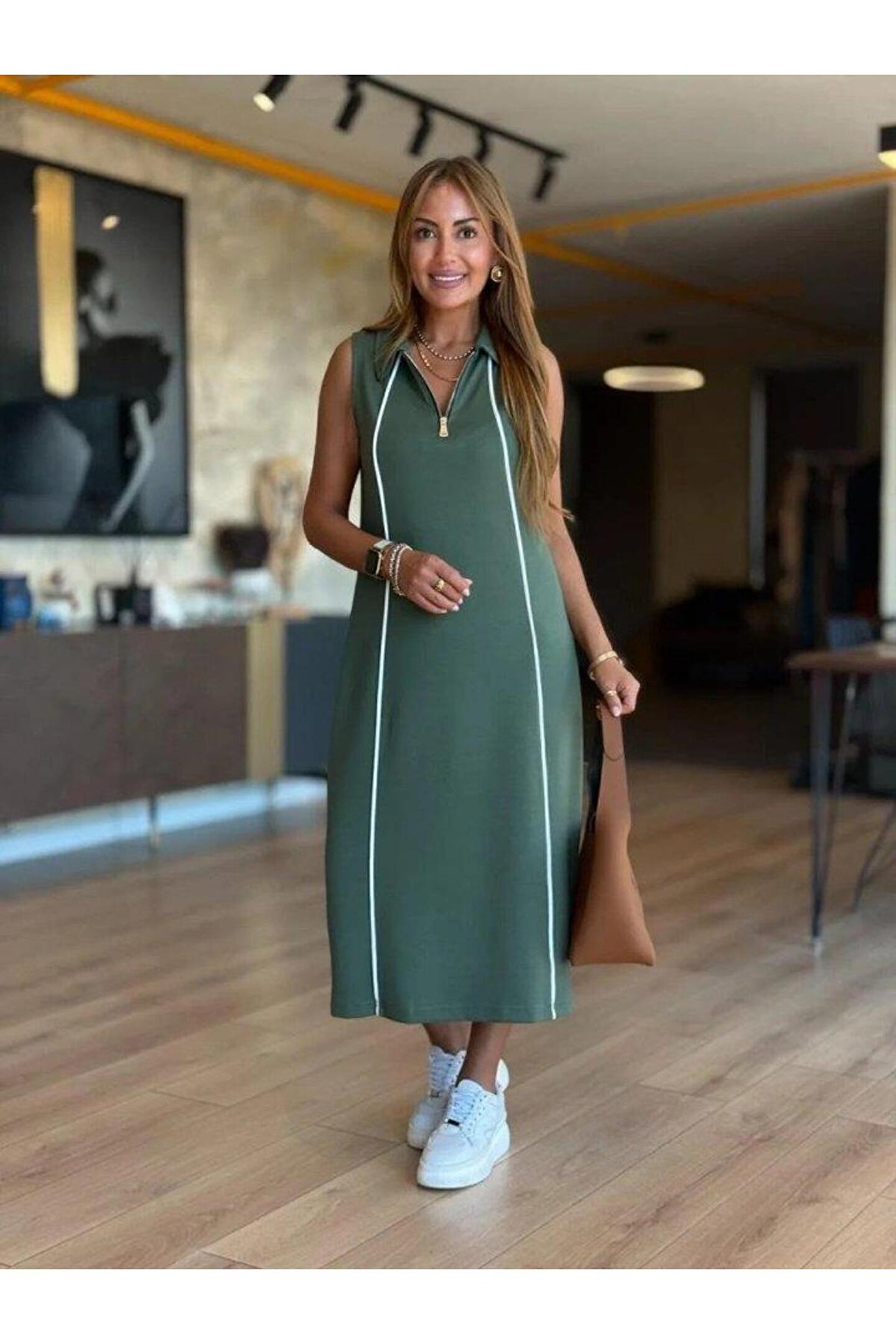 shopivastore Kadın Modal Kumaş şerit Detaylı Fermuarlı Midi Elbise