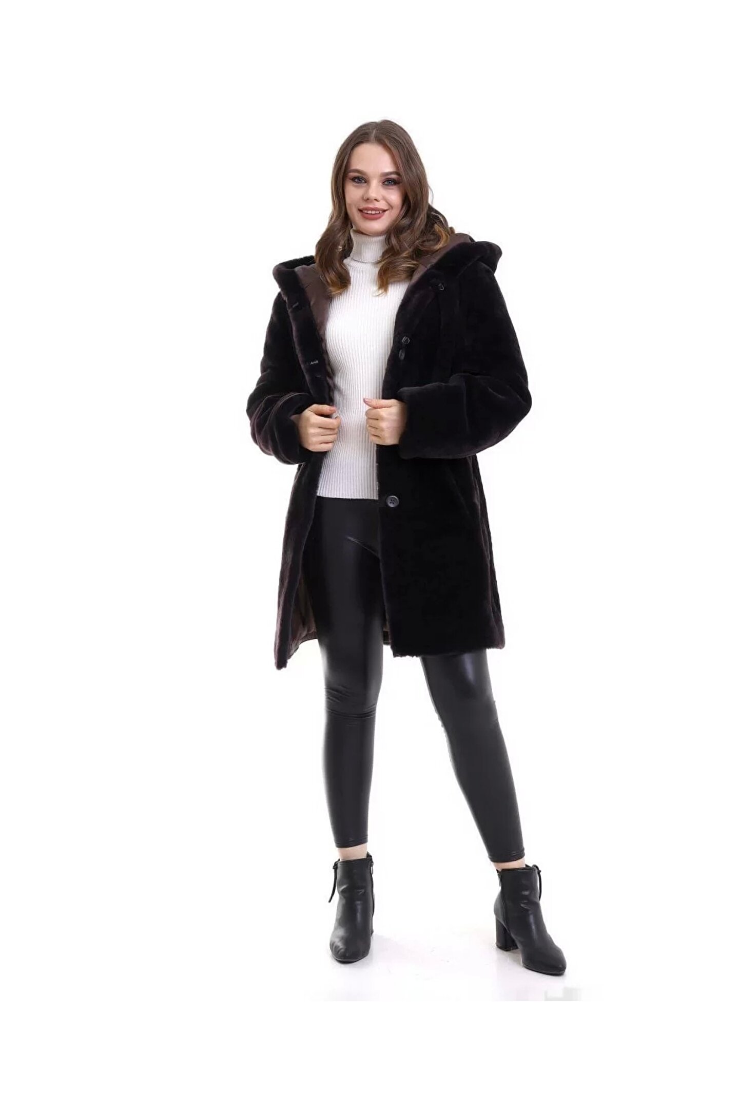 Kadın Reks Kapüşonlu - Kahverengi