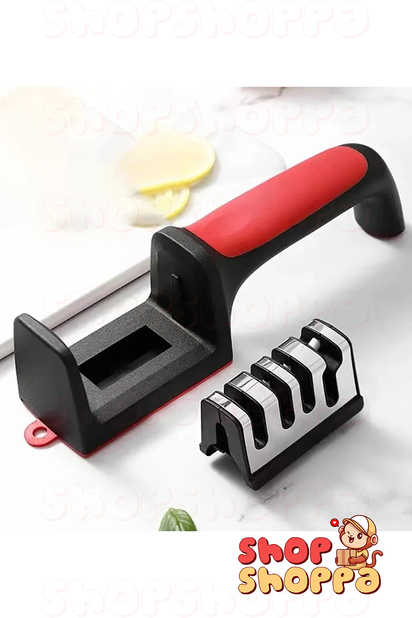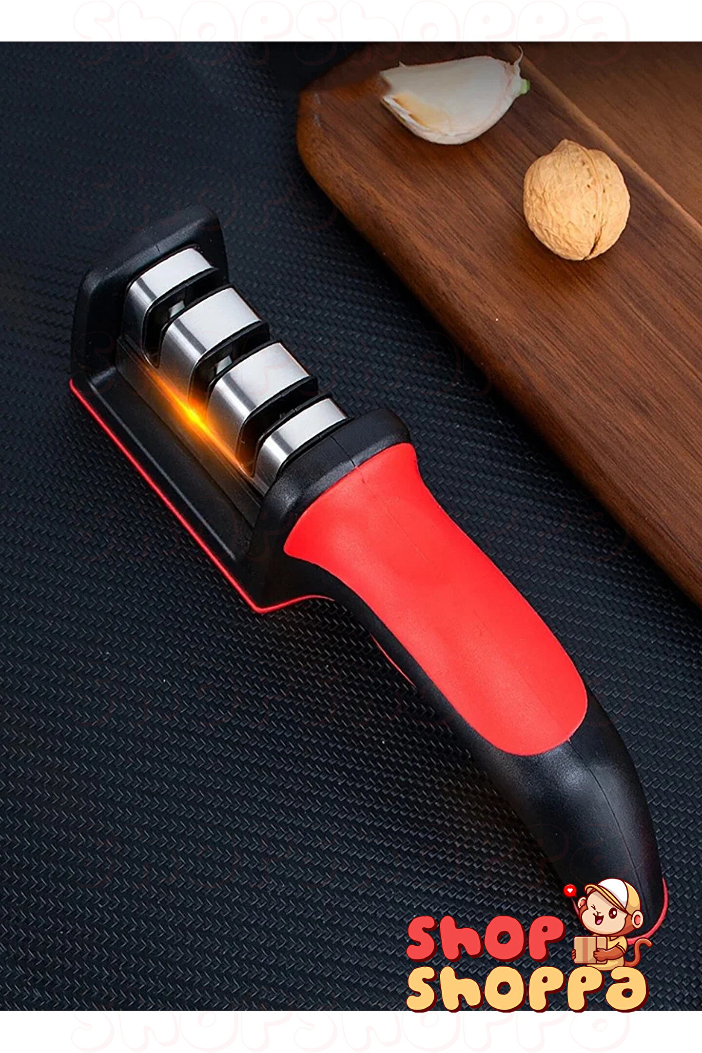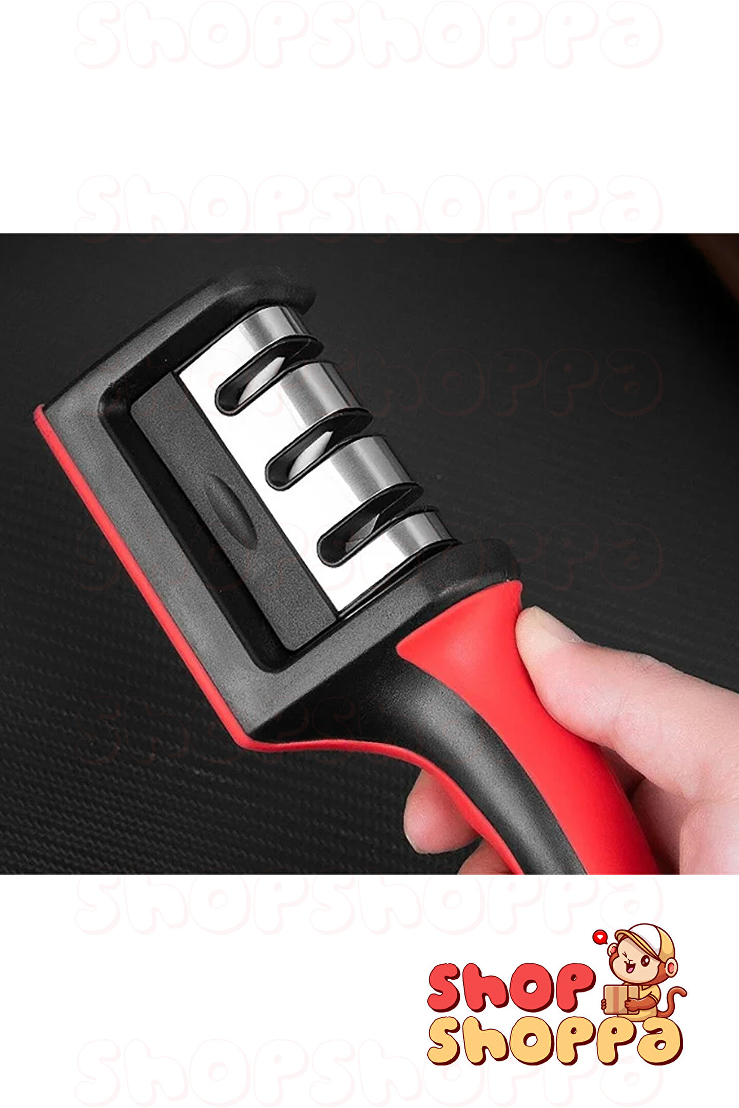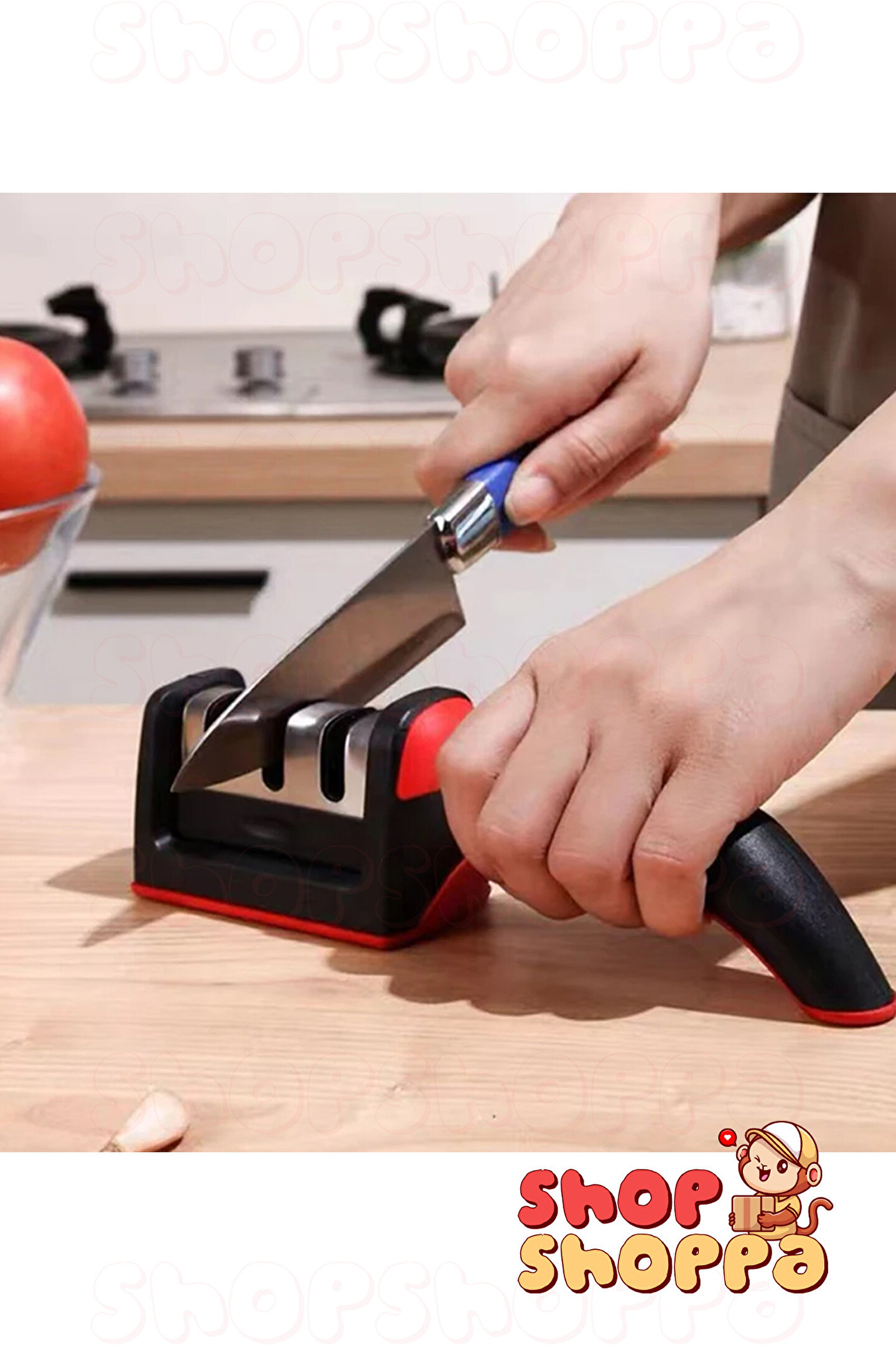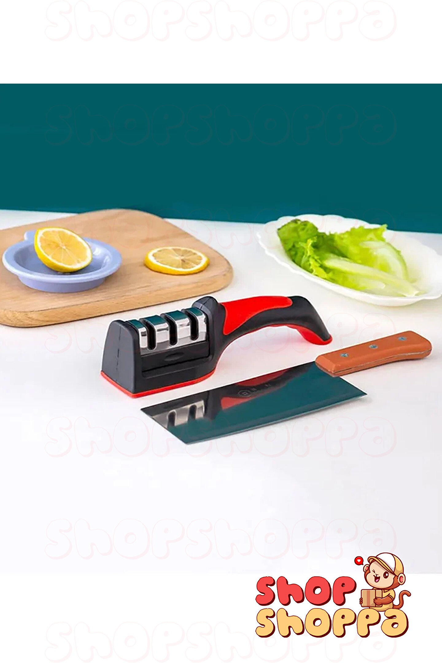 ShopShoppa Paslanmaz Çelik Bıçak Satır Bileme Aparatı, Tutmalı Güvenli Çok Fonksiyonlu 3 Aşamalı Bileyici
