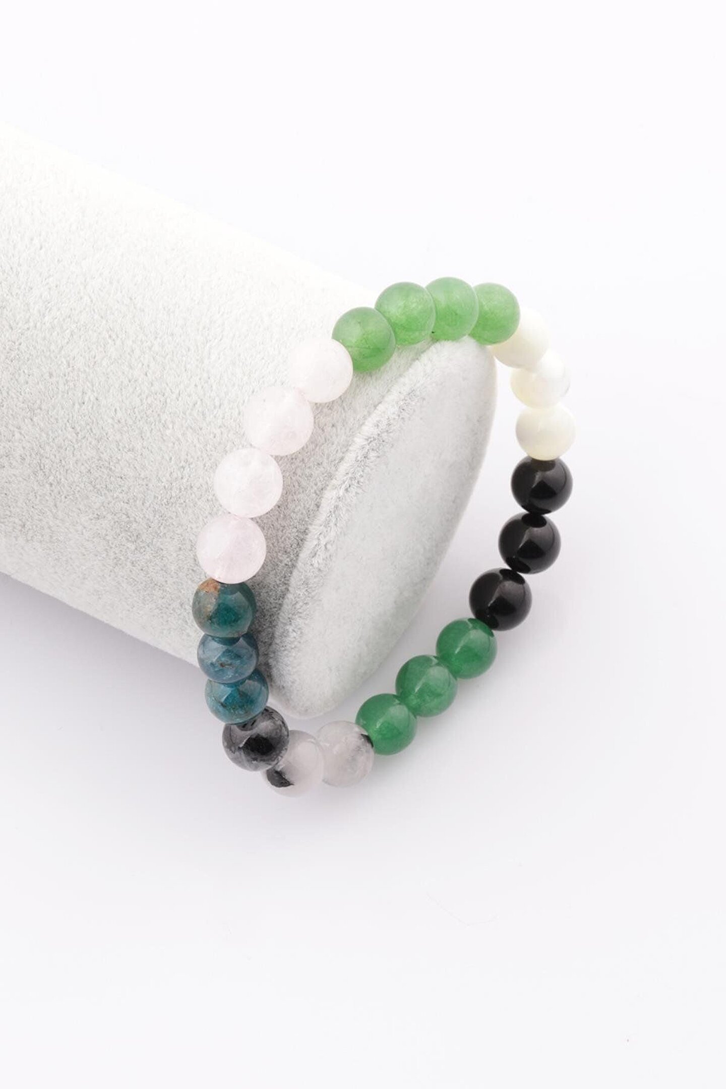 Tane Boyu 8 mm.; ; Ağırlık 18 gr.; ; Uzunluk 18 cm.; ; Esnek Lastik Misinaya Dizilmiştir Her Bileğe Uyum Sağlar.; ; Boğa Burcuna Uyumlu Yeşim, Turmalin, Apatit, Rutil Kuvars, Pembe Kuvars, Sedef ve Aventurin Taşlarından Oluşmaktadır.; ; Ürün Fotoğrafı Temsili Fotoğraftır, Ürünümüz Doğal Taş Olduğundan Renklerinde, Ağırlıklarında ve Boyutlarında Küçük Farklılıklar Gösterebilir.;