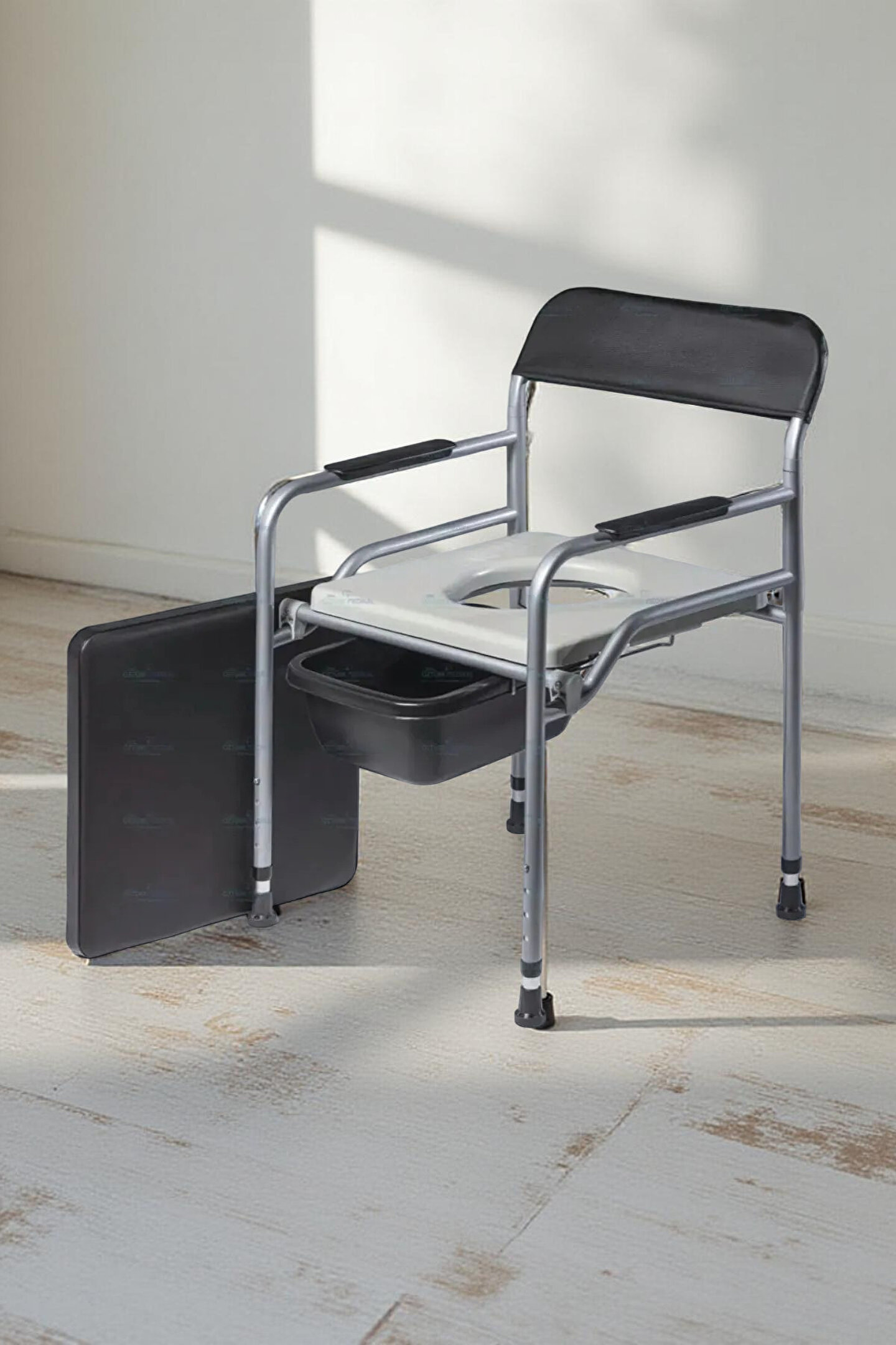 - Seyyar tasarımı sayesinde, evde veya dış mekanlarda kolayca taşınabilir ve kullanılır.; - Katlanabilir yapısı ile yer kaplamaz ve saklama konusunda pratik çözümler sunar.; - Klozetli özelliğiyle hijyenik bir kullanım sağlar; tuvalet ihtiyacınız olduğunda rahatça oturabilirsiniz.; - Yükseltilebilir mekanizması sayesinde farklı boyutlardaki kullanıcılar için idealdir ve kişisel konforunuzu artırır.; - Menşei Türkiye'den gelen bu ürün, yerel üretim kalitesini yansıtarak dayanıklılık ve güvenilirlik sunar.; -Ürün hastanın banyoda da kullanması ve oda içinde de sandalye görevi görebilmesi için hasta psikolojisi düşünülerek deri döşemeli lüks şekilde tasarlanmıştır.;