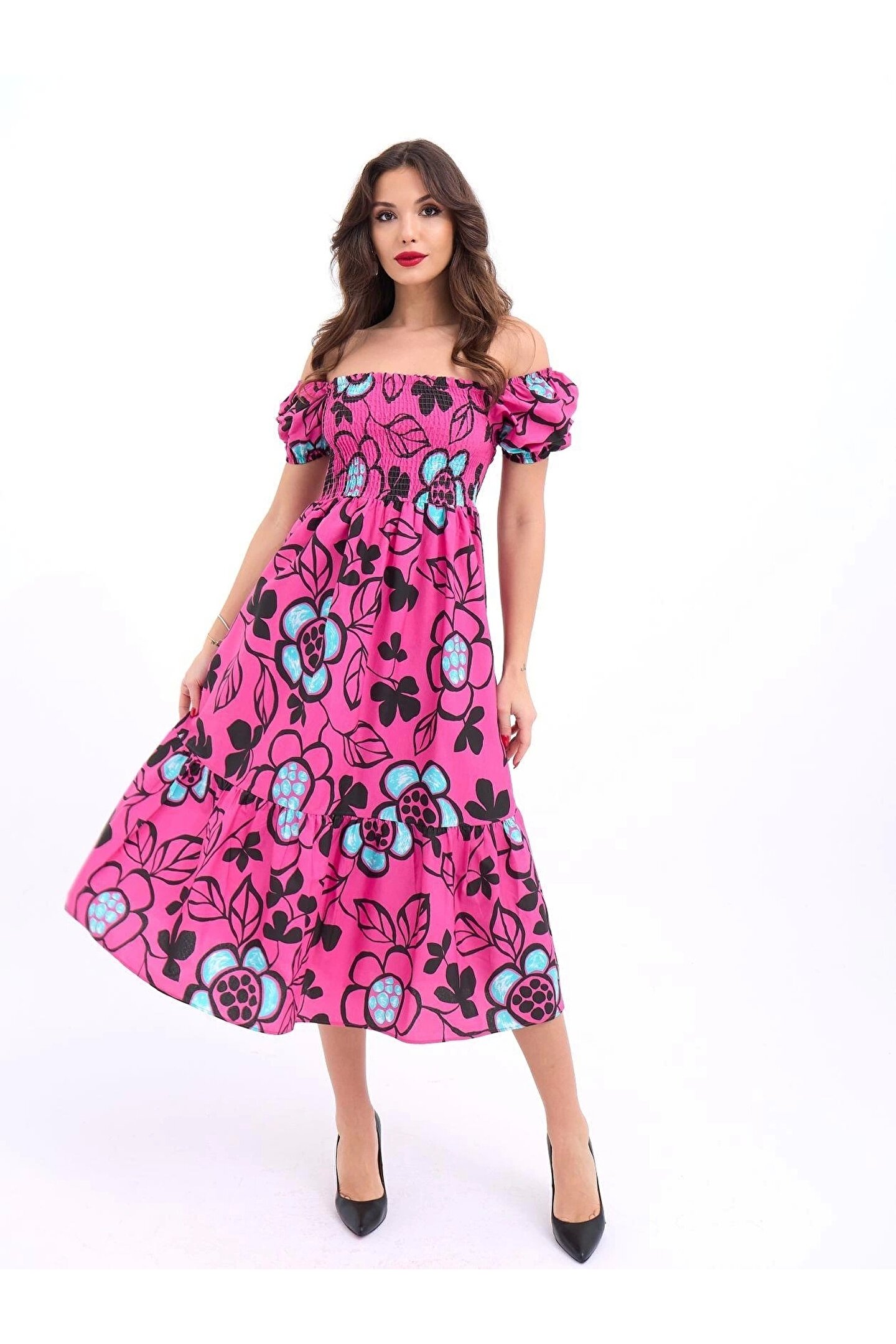 Modelin Ölçüleri: Boy:165, Kg:55, Göğüs:90, Bel:72, Kalça: 100