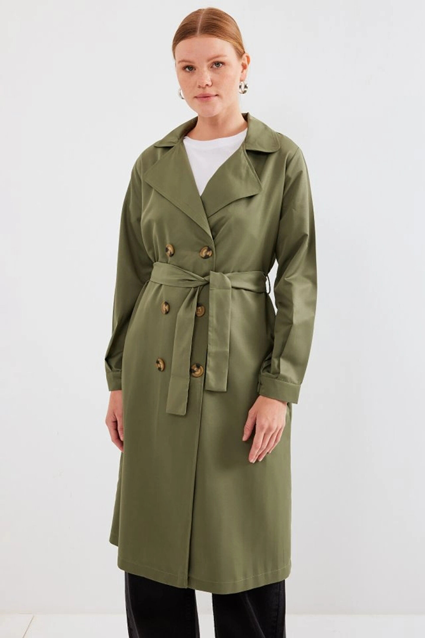 5853 Kruvaze Yaka Trençkot - Haki
