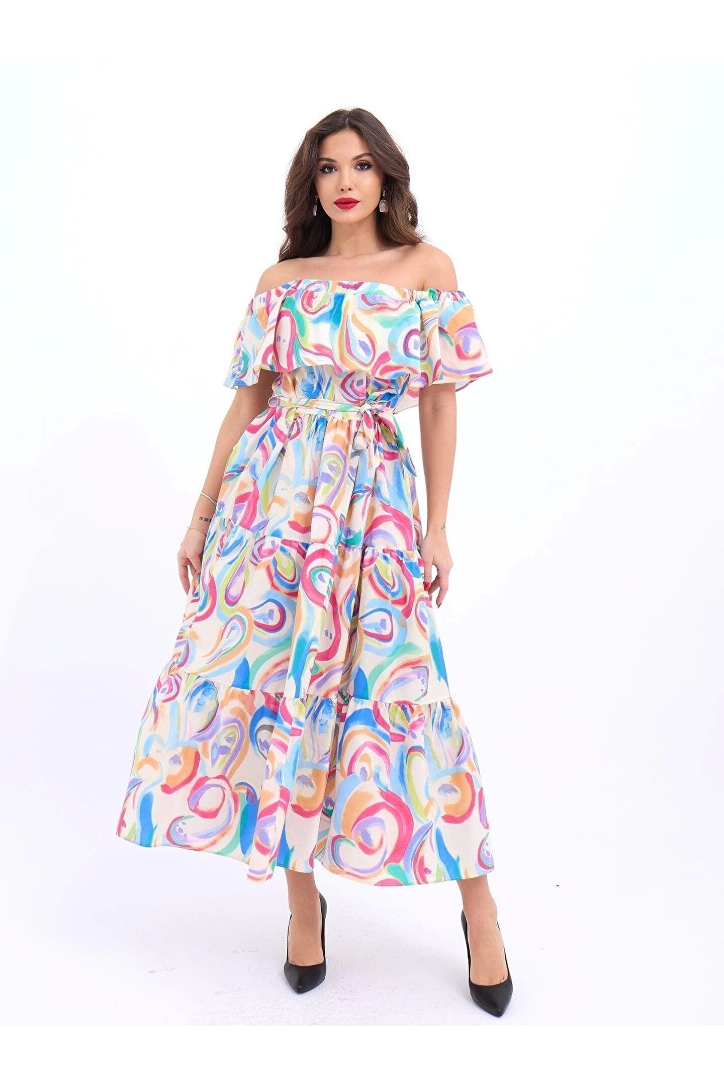 Modelin Ölçüleri: Boy:165, Kg:55, Göğüs:90, Bel:72, Kalça: 100