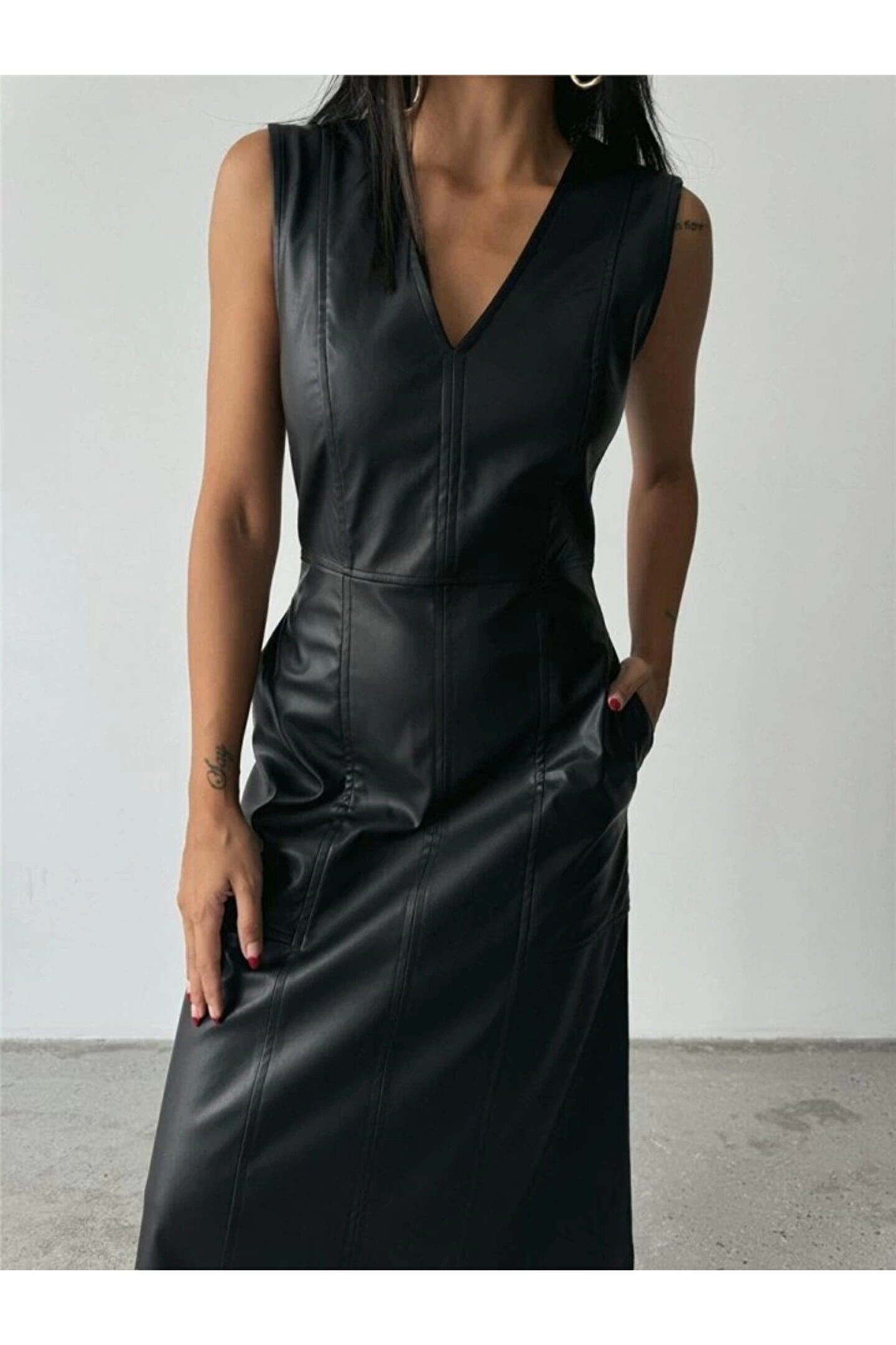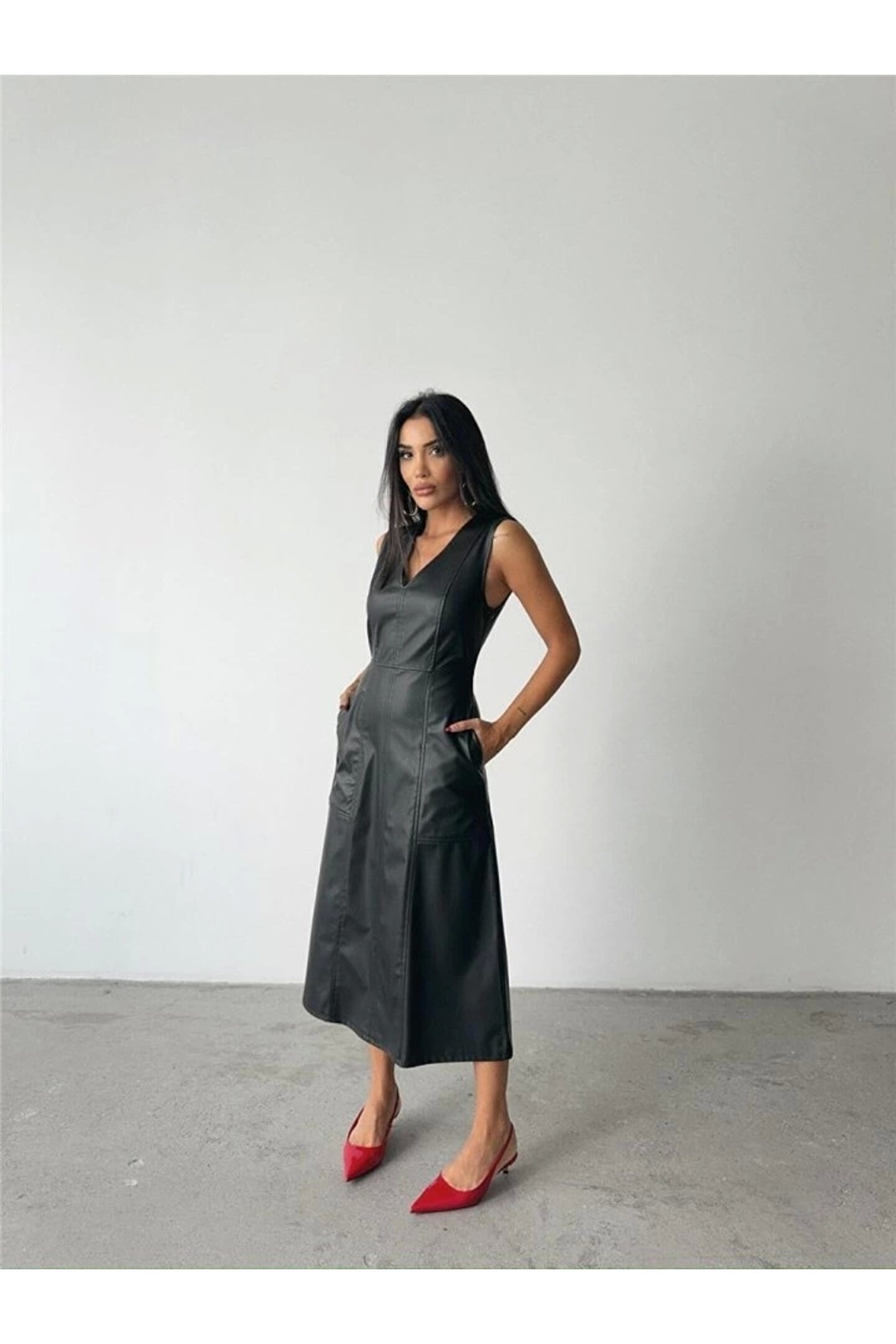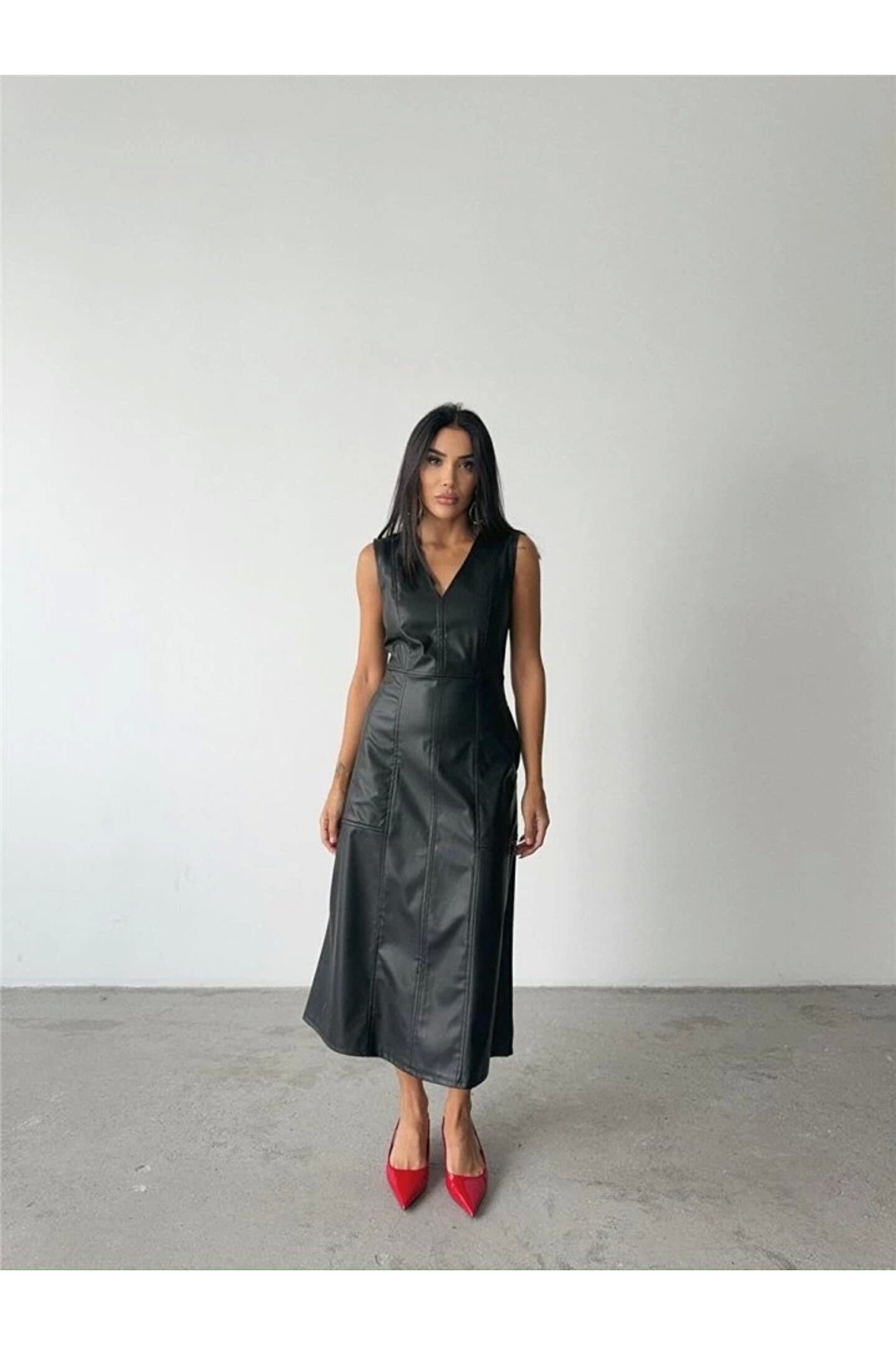 ASKILI DERİ ELBİSE ŞANEL BOY - Siyah