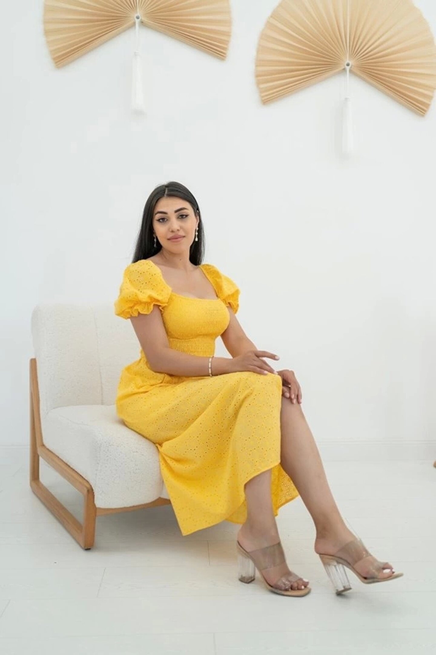 <div id="rich-content-wrapper"> <p>Sarı Tokalı Fisto Elbise</p> <br> <p>Modelin Ölçüleri: Boy:165, Kg:55, Göğüs:90, Bel:72, Kalça: 100</p> <br> <p>Modelin üzerindeki ürün M/38 bedendir</p> <br> <ul> </ul> </div>