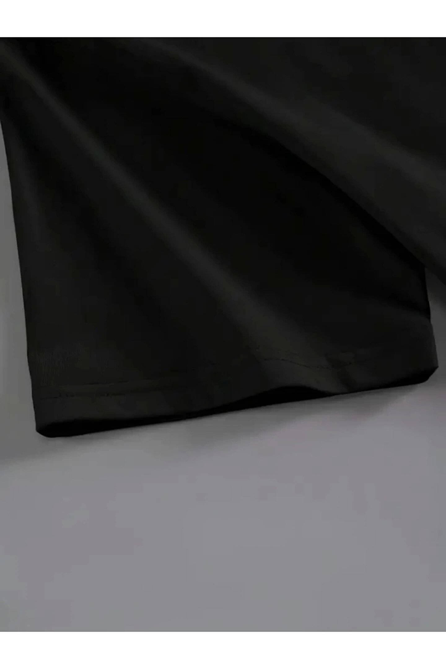 Baskılı Oversize Bisiklet Yaka T-shirt - Siyah
