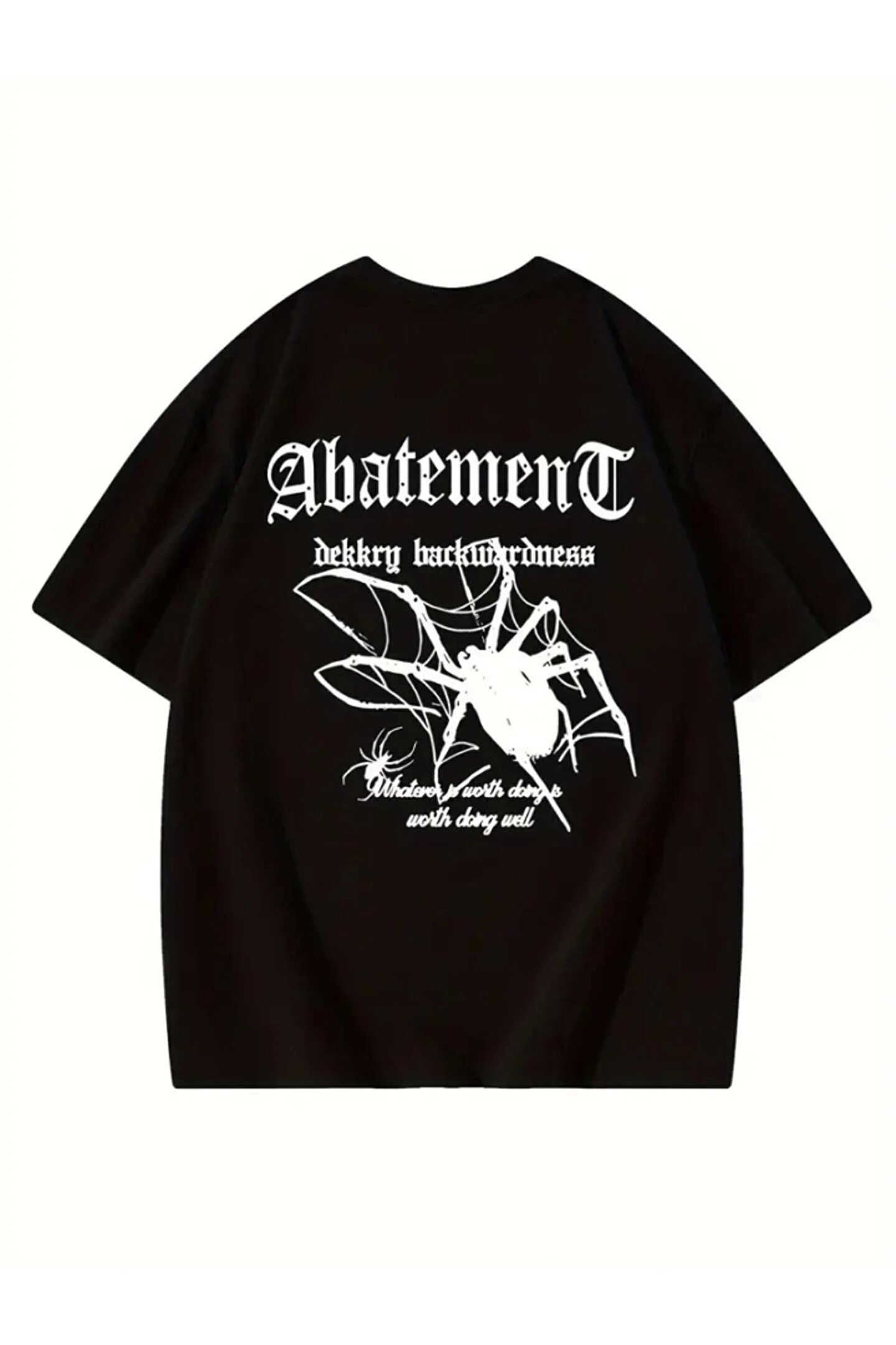 Baskılı Oversize Bisiklet Yaka T-shirt - Siyah
