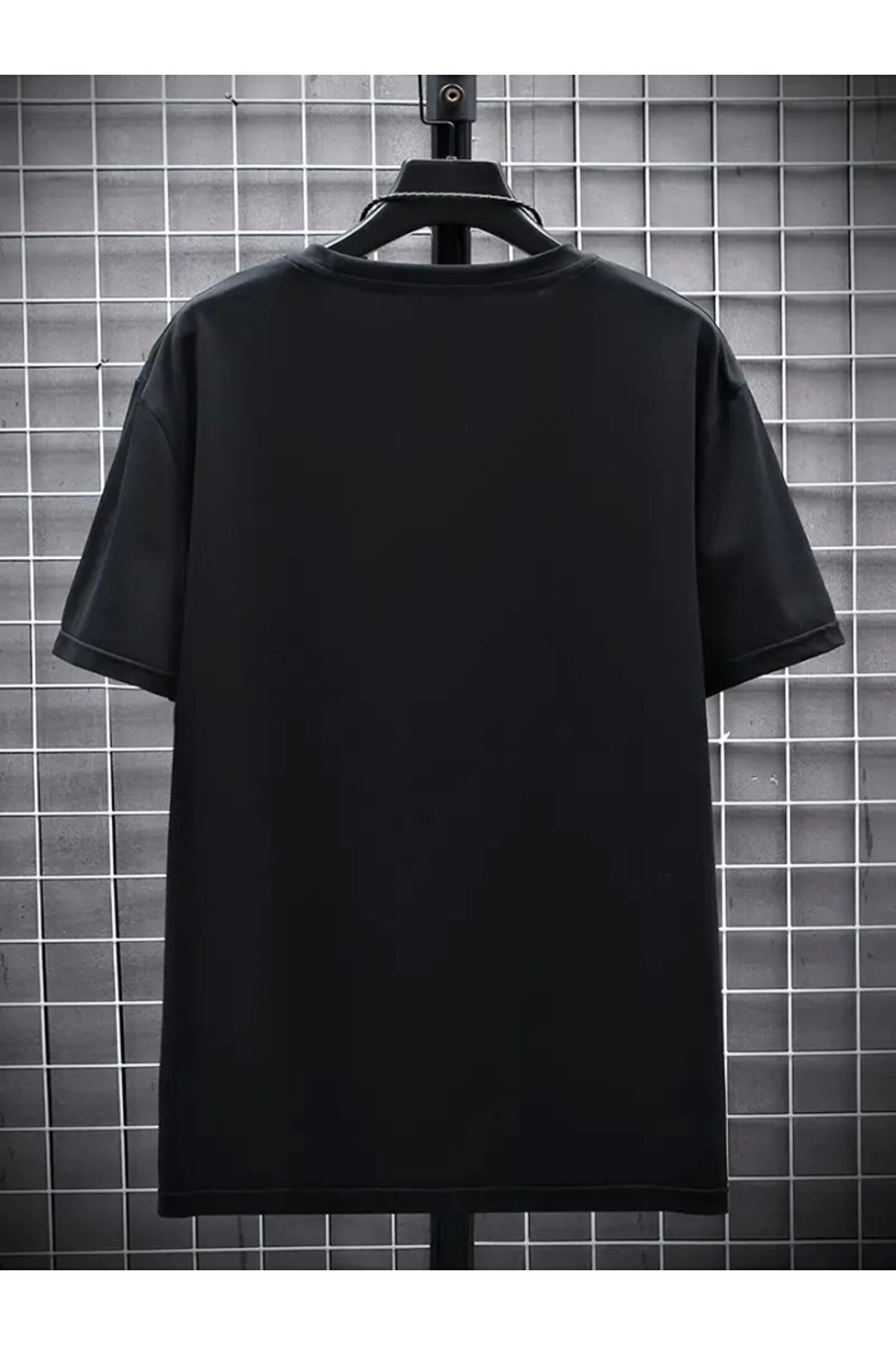 Baskılı Oversize Bisiklet Yaka T-shirt - Siyah