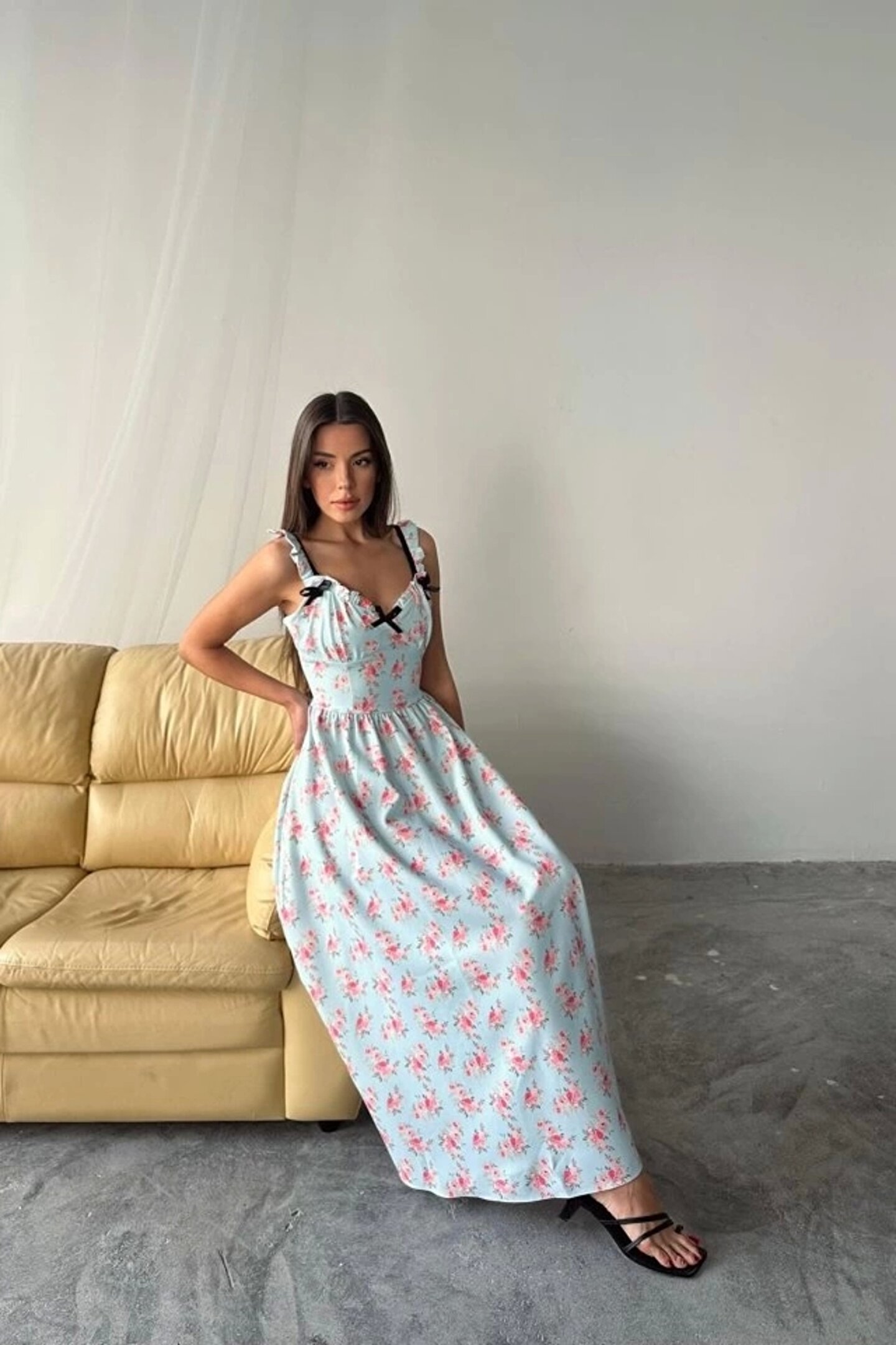 <p>Bebe Mavi Önü Fiyonklu Çiçekli Elbise</p> <br> <p>Modelin Ölçüleri: Boy:165, Kg:55, Göğüs:90, Bel:72, Kalça: 100</p> <br> <p>Modelin üzerindeki ürün M/38 bedendir</p> <br> <ul> </ul>