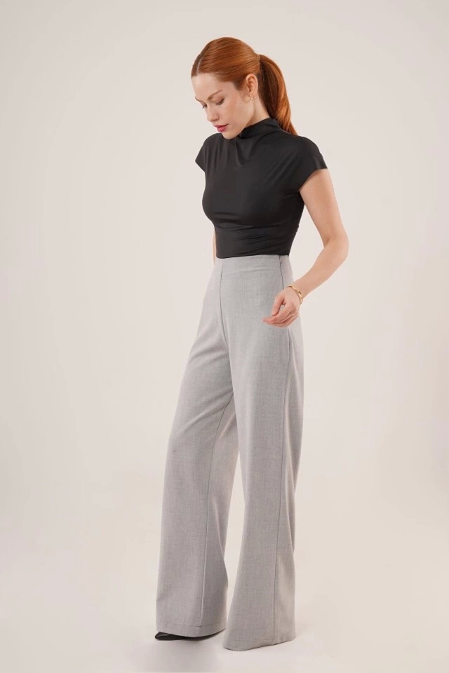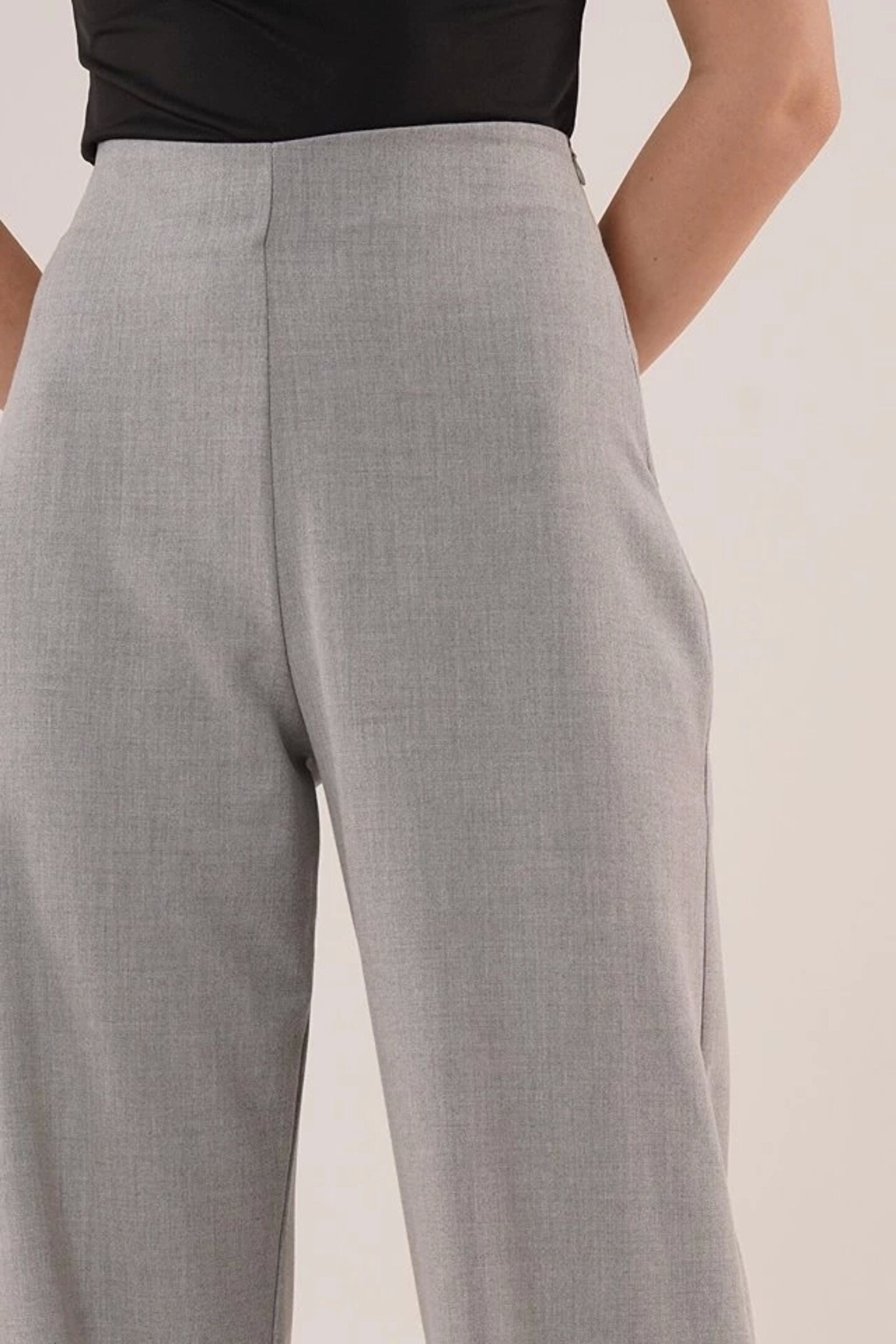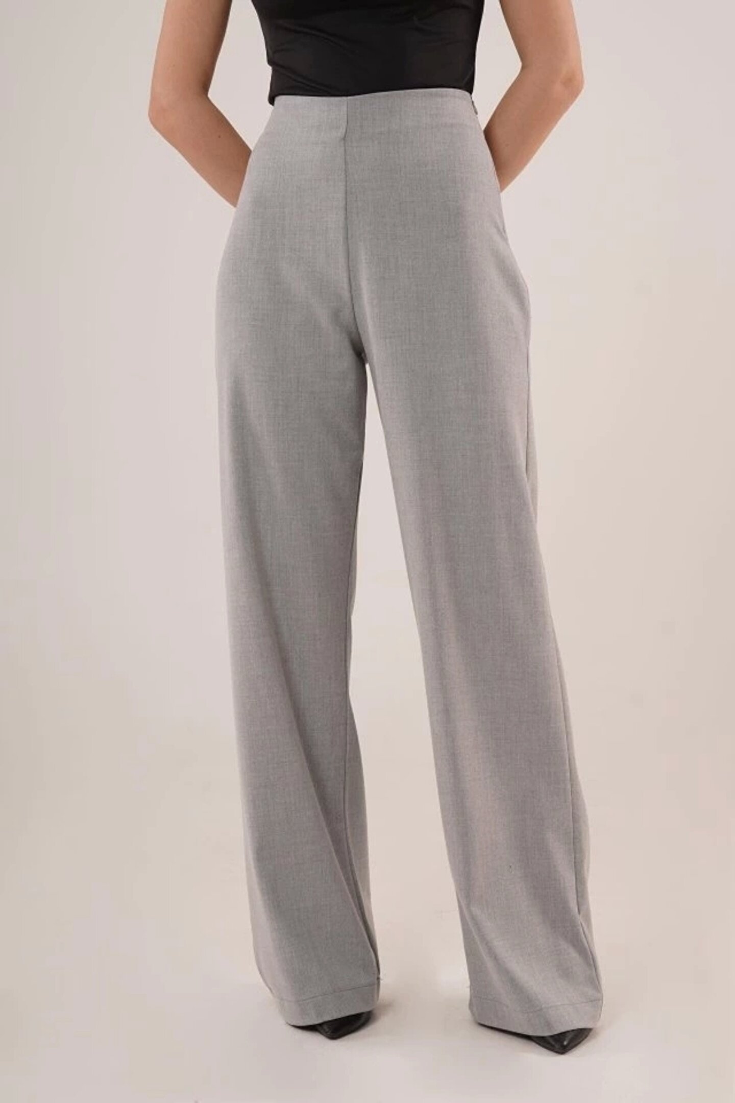 Bol Paça Yandan Fermuarlı Gri Kumaş Pantolon