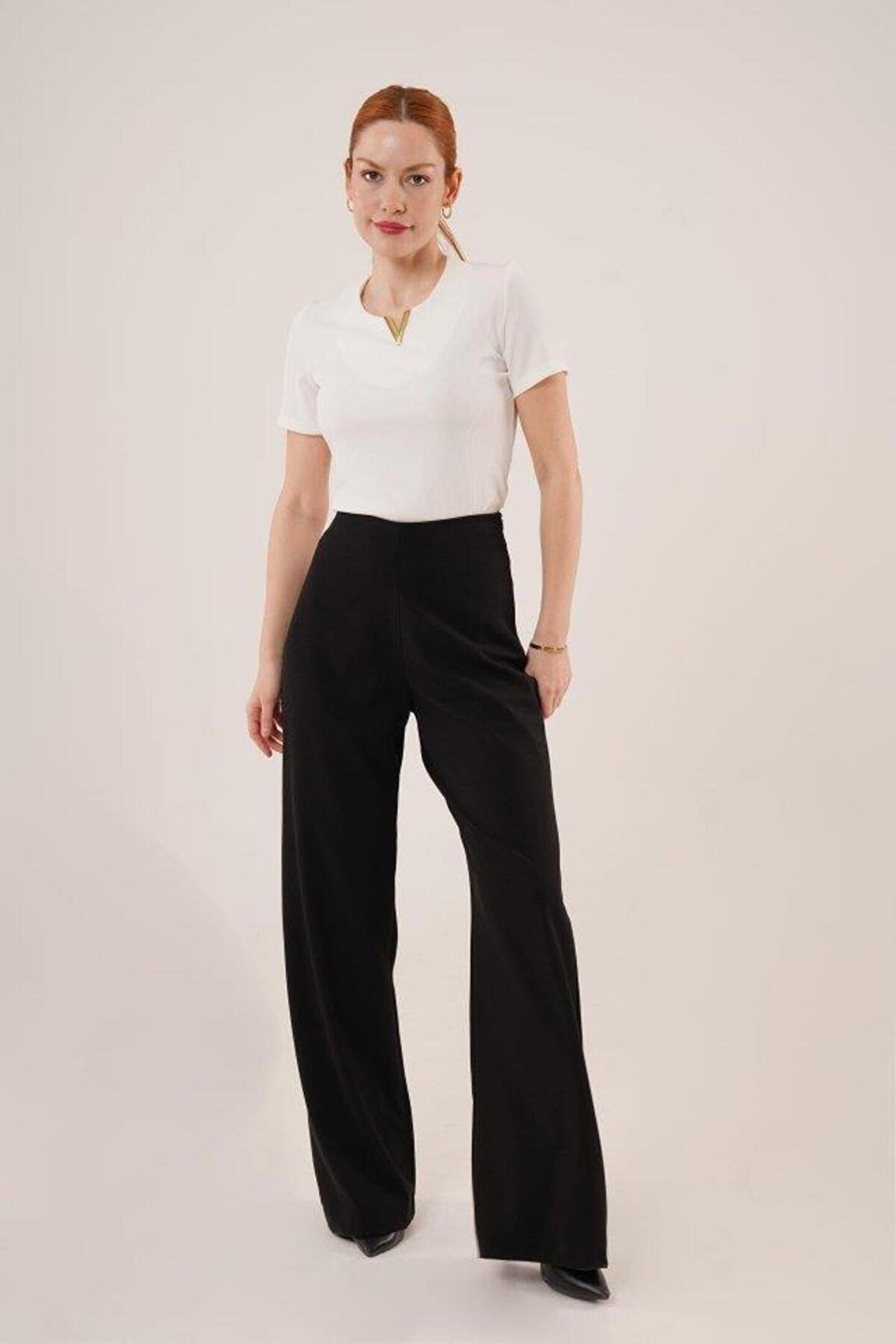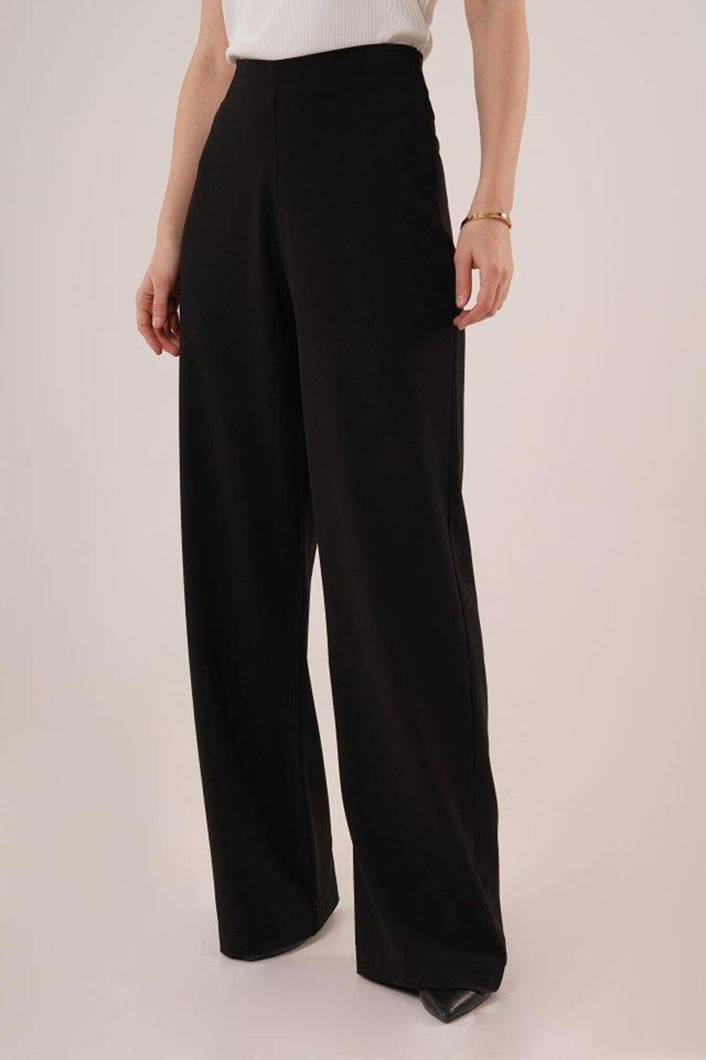 Silerra Bol Paça Yandan Fermuarlı Siyah Kumaş Pantolon