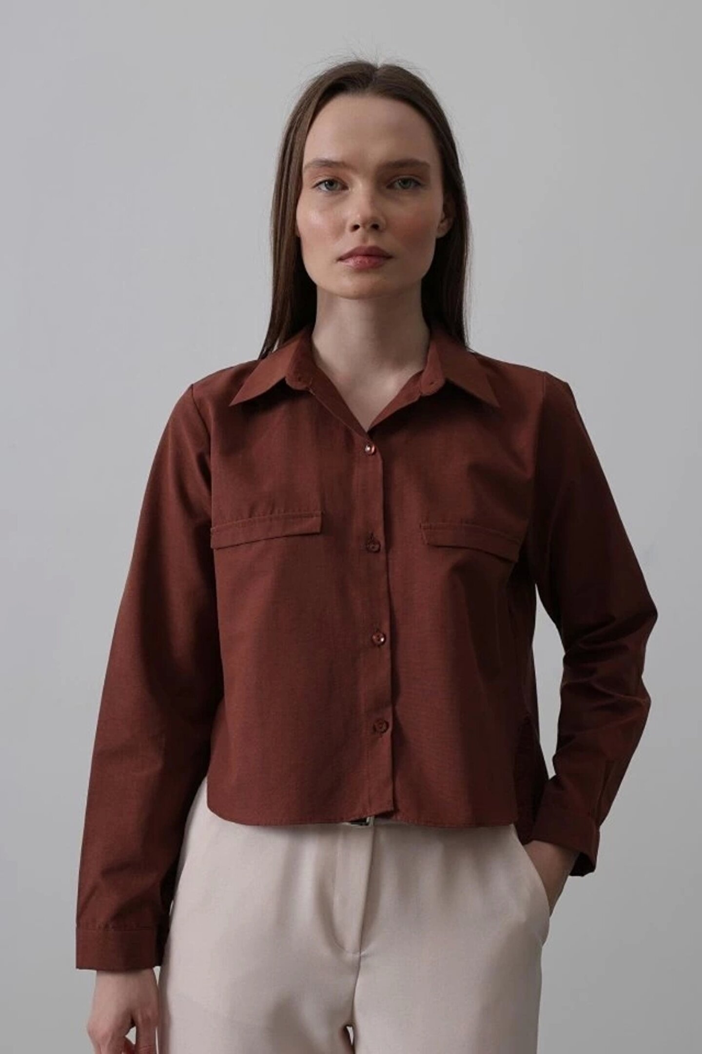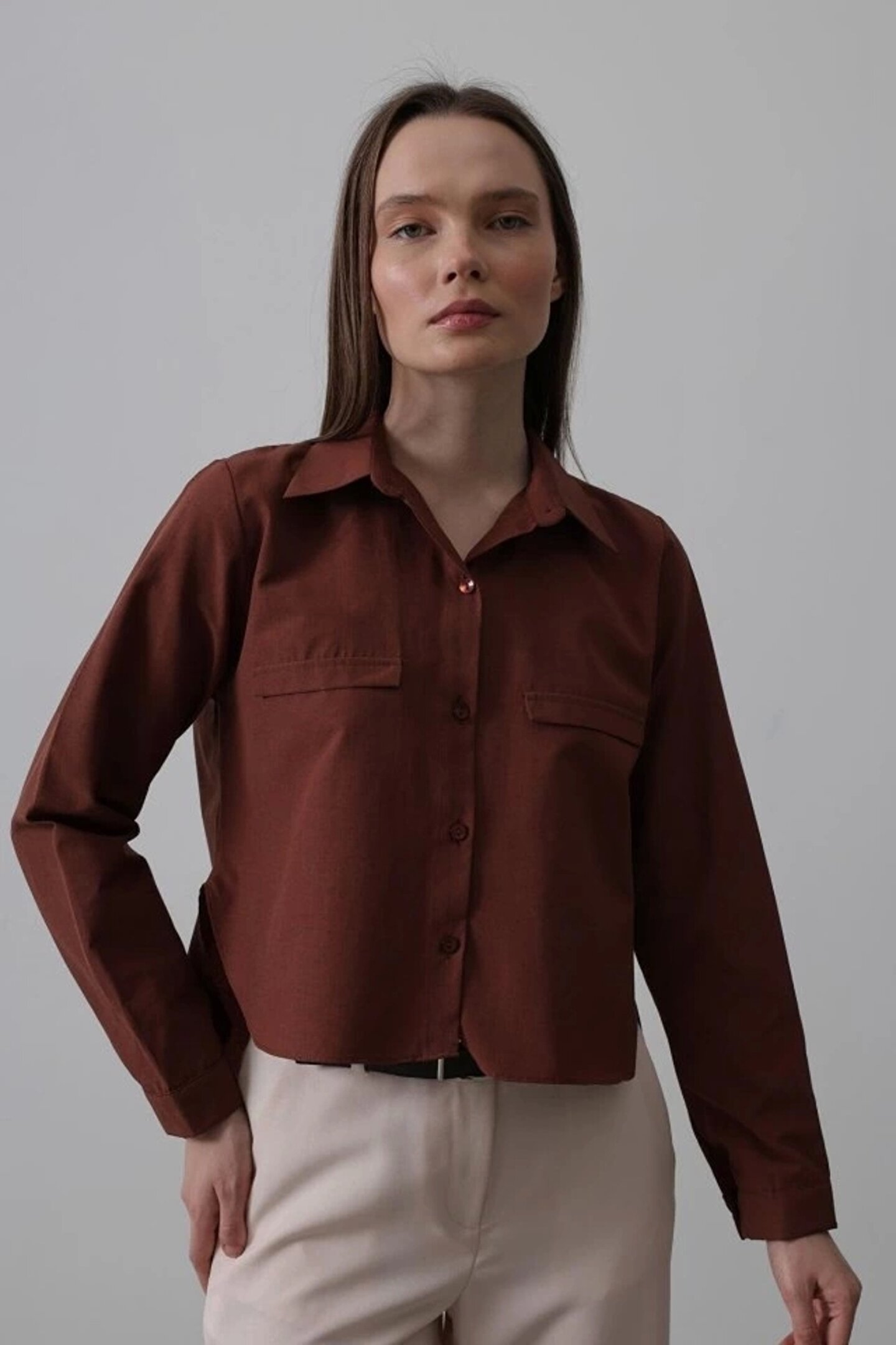 <p>Cepli Uzun Kol Gömlek - Koyu Kahve</p>