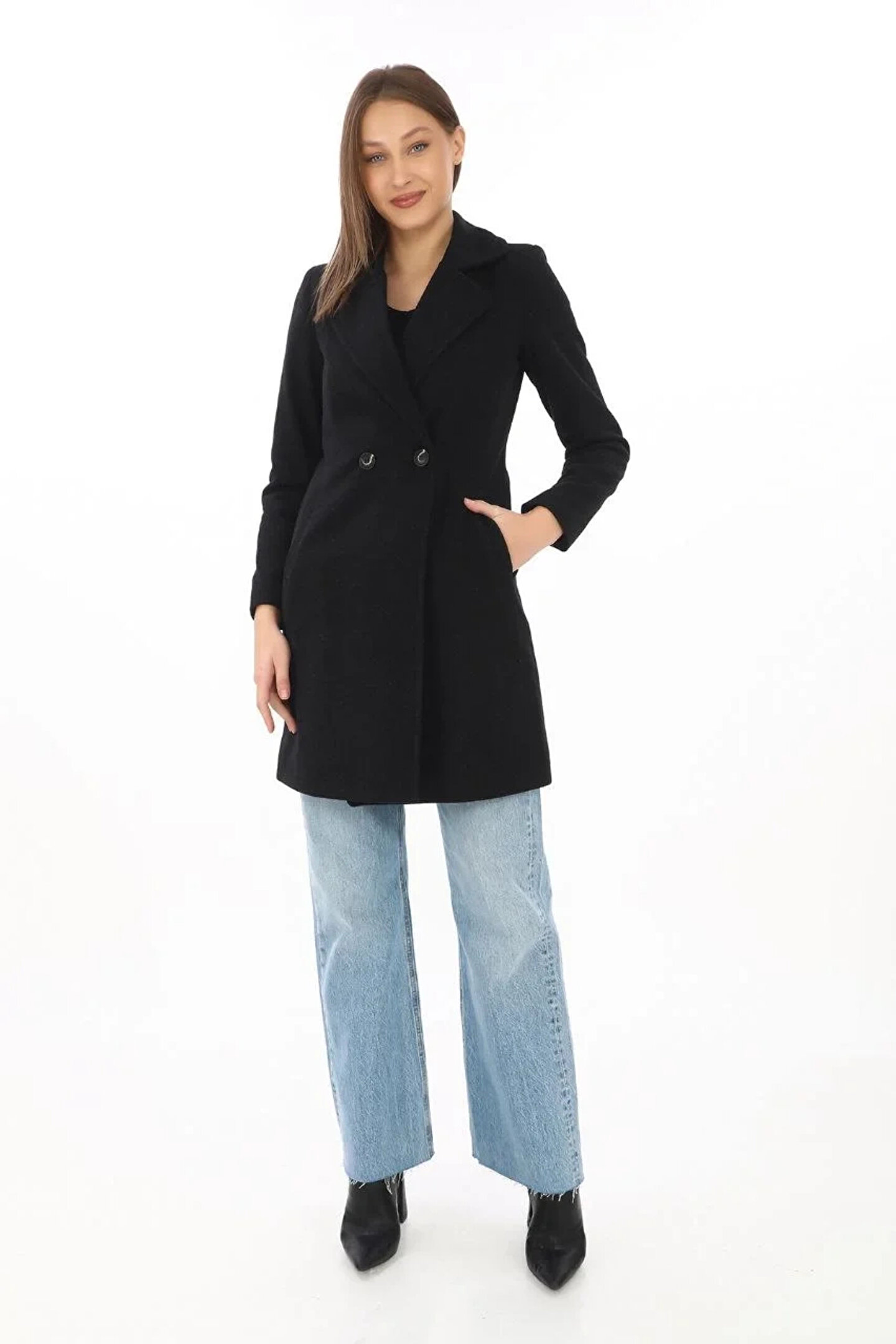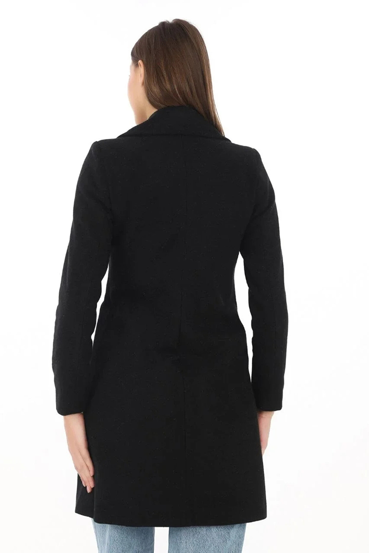 Düğmeli İçi Astarlı Kadın Kaşmir Kaşe Kaban - Siyah