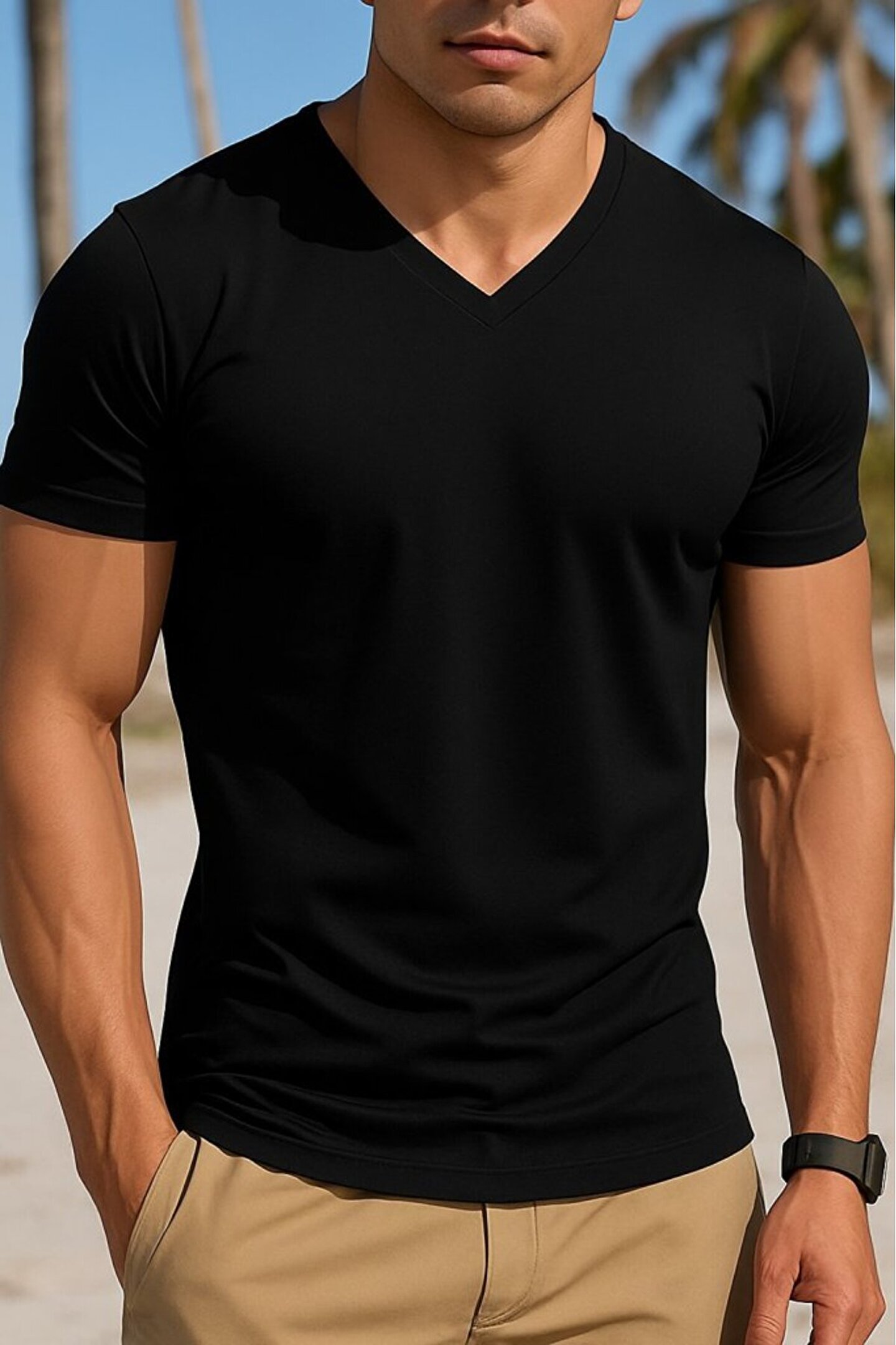 Erkek Kısa Kollu V Yakalı Viskon Tişört