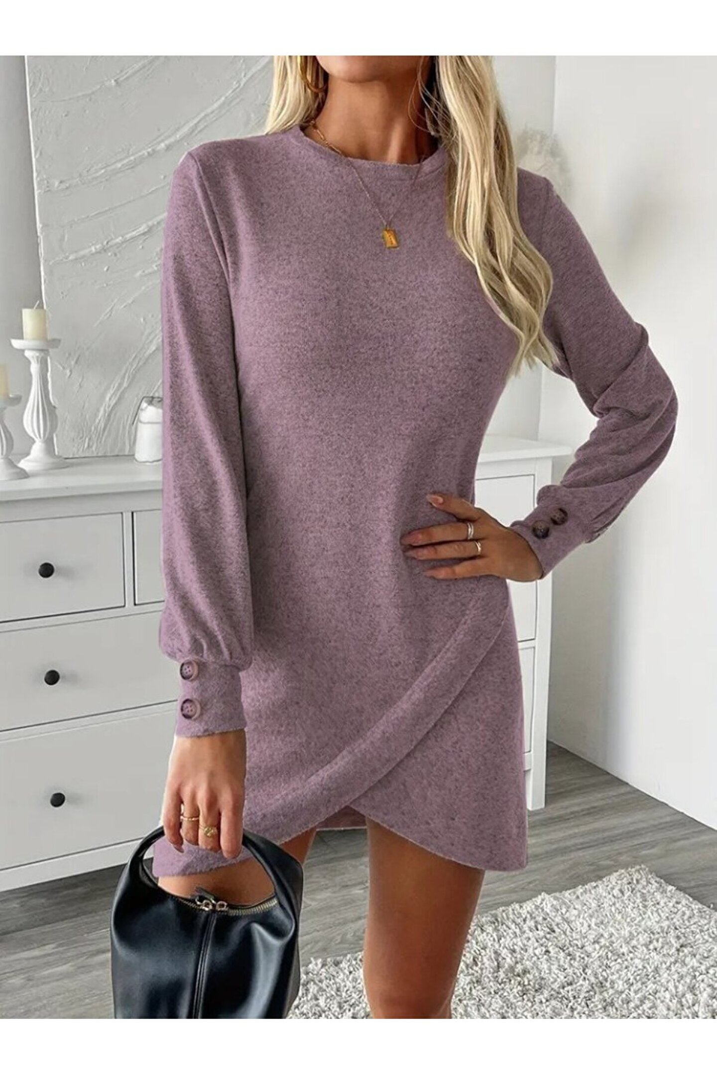 EQURİ Kadın Uzun Kollu Bisiklet Yaka önden Asimetrik Kesim Detaylı Mini Yumoş Elbise
