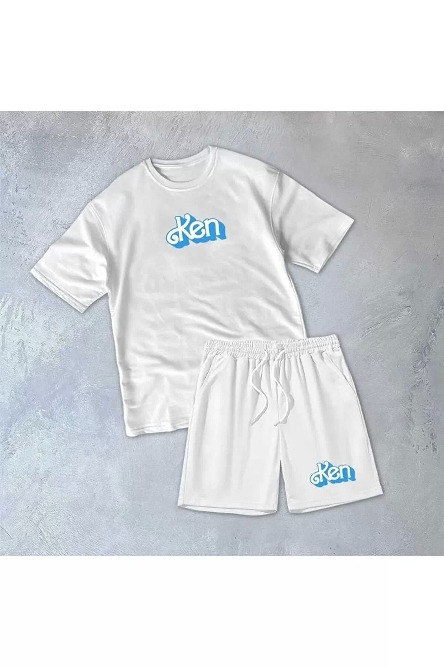 Erkek Baskılı İkili Şortlu Takım - Beyaz