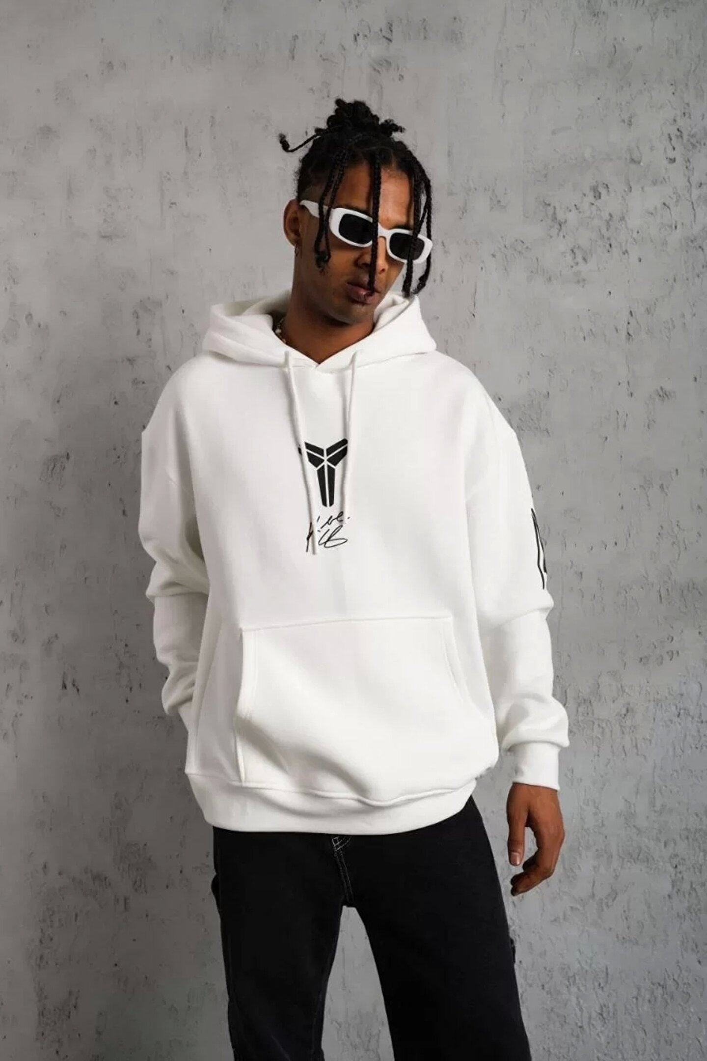 Silerra Erkek Baskılı Kapüşonlu Sweat - Beyaz