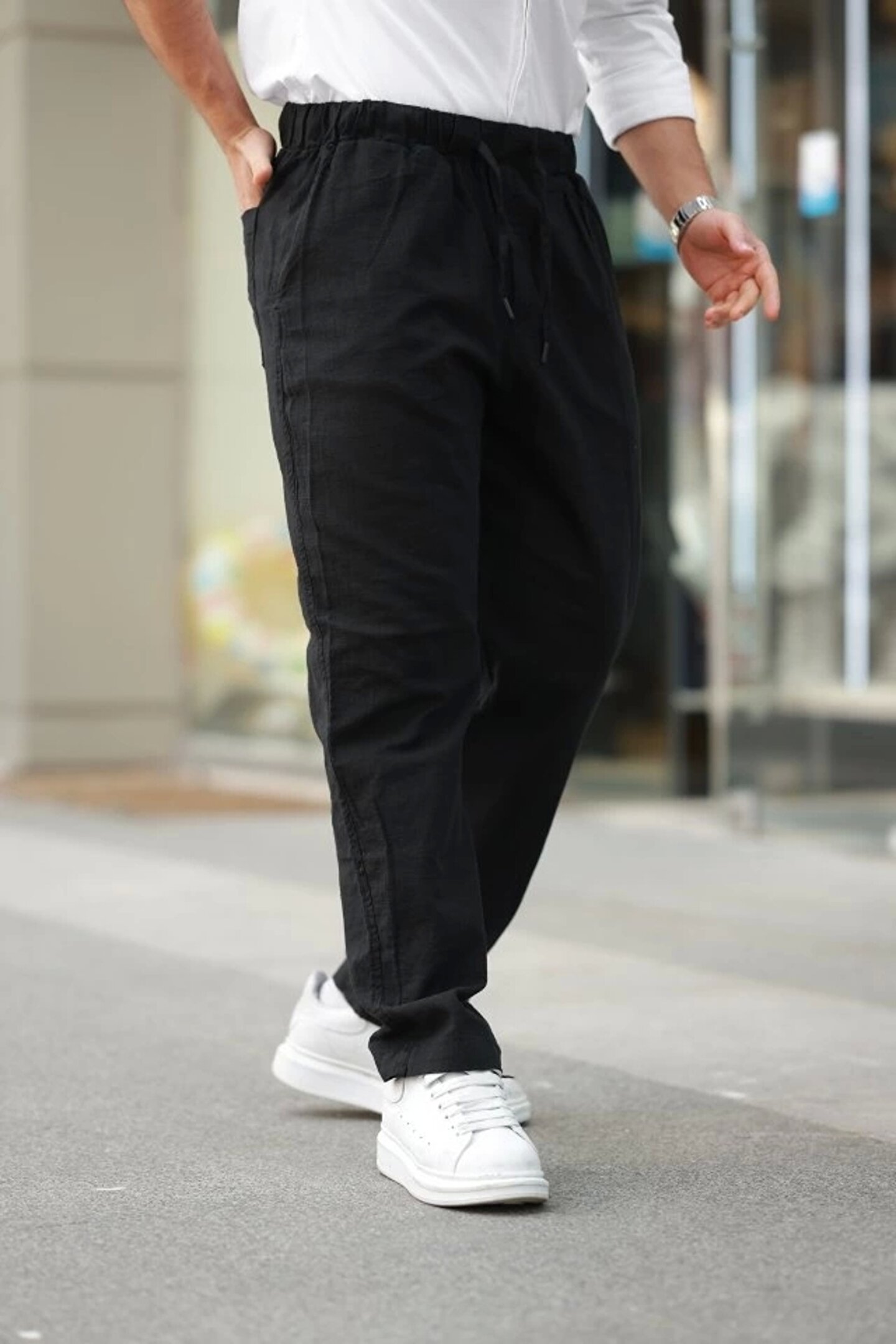 Silerra Erkek Beli Lastikli Keten Rahat Pantolon