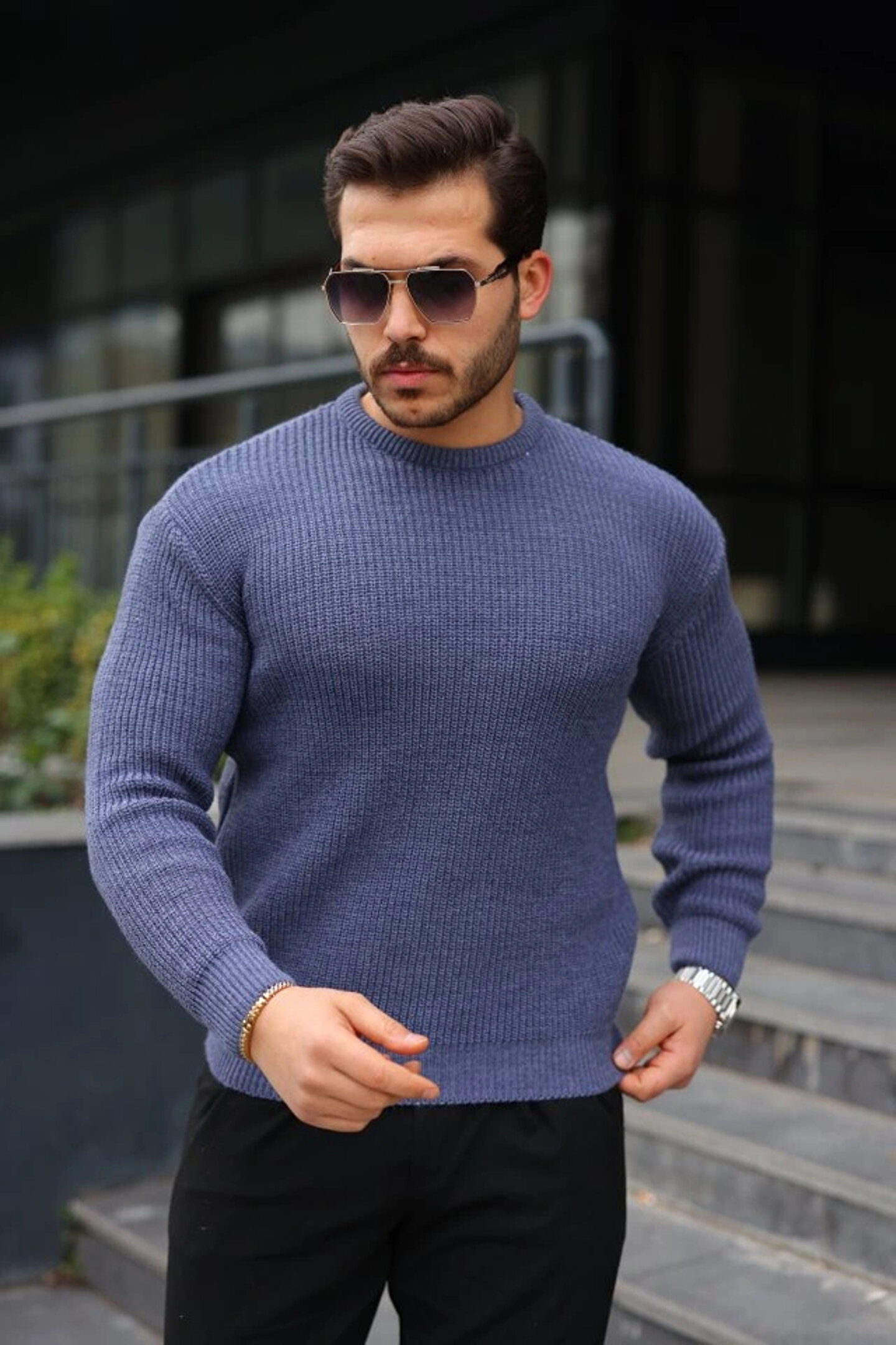 Erkek Bisiklet Yaka Örme Kazak
